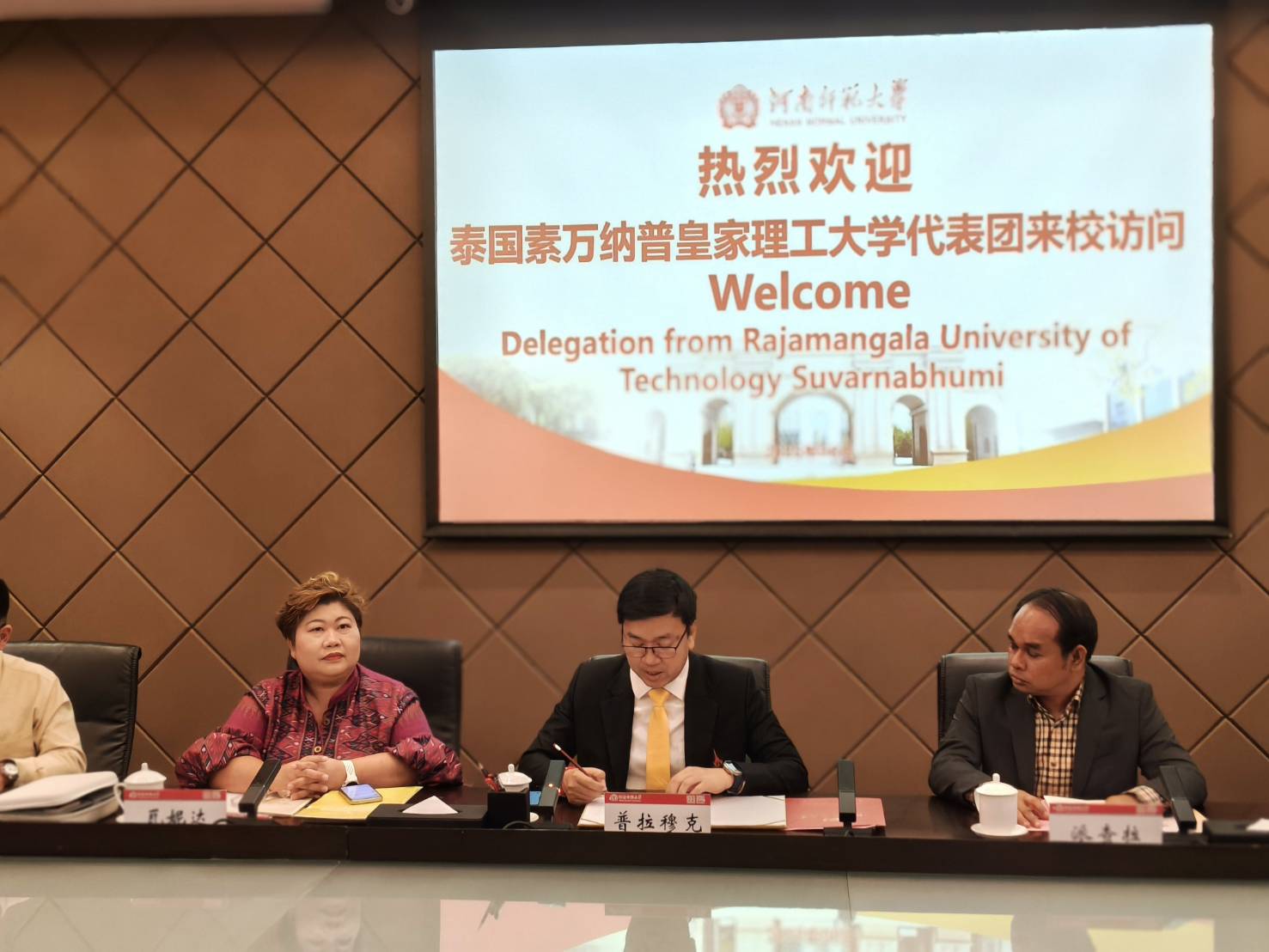 เมื่อวันอังคารที่ 24 มิถุนายน 2568 มหาวิทยาลัยเทคโนโลยีราชมงคลสุวรรณภูมิ เดินหน้าขยายเครือข่ายความร่วมมือระดับนานาชาติ โดยรองศาสตราจารย์ ดร.ประมุข อุณหเลขกะ อธิการบดี พร้อมด้วยคณะผู้บริหาร อาจารย์วนิดา วงศ์บรรณาคม ผู้ช่วยอธิการบดี และผู้ช่วยศาสตราจารย์พัชระ กัญจนกาญจน์ คณบดีคณะวิศวกรรมศาสตร์และสถาปัตยกรรมศาสตร์ เดินทางเยือน “มหาวิทยาลัยครูเหอหนาน” (Henan Normal University) สาธารณรัฐประชาชนจีน เพื่อหารือแนวทางความร่วมมือทางวิชาการและลงนามในบันทึกข้อตกลงร่วมอย่างเป็นทางการ การประชุมครั้งนี้จัดขึ้นท่ามกลางบรรยากาศที่อบอุ่นและเป็นกันเอง โดยมหาวิทยาลัยครูเหอหนานได้นำเสนอปรัชญาการจัดการศึกษา หลักสูตร และผลงานวิชาการที่สร้างชื่อในเวทีระดับประเทศและนานาชาติ สะท้อนถึงศักยภาพอันโดดเด่นในการพัฒนาทางวิชาการอย่างต่อเนื่อง ด้านมหาวิทยาลัยเทคโนโลยีราชมงคลสุวรรณภูมิ ได้ร่วมแลกเปลี่ยนแนวคิดและประสบการณ์ พร้อมหารือเชิงลึกถึงแนวทางความร่วมมือในอนาคต อาทิ การพัฒนาหลักสูตรร่วมด้านวิทยาศาสตร์และการศึกษา การแลกเปลี่ยนนักศึกษา โครงการฝึกอบรมระยะสั้น และการเรียนรู้ระบบจัดการเรียนการสอนของทั้งสองสถาบัน
