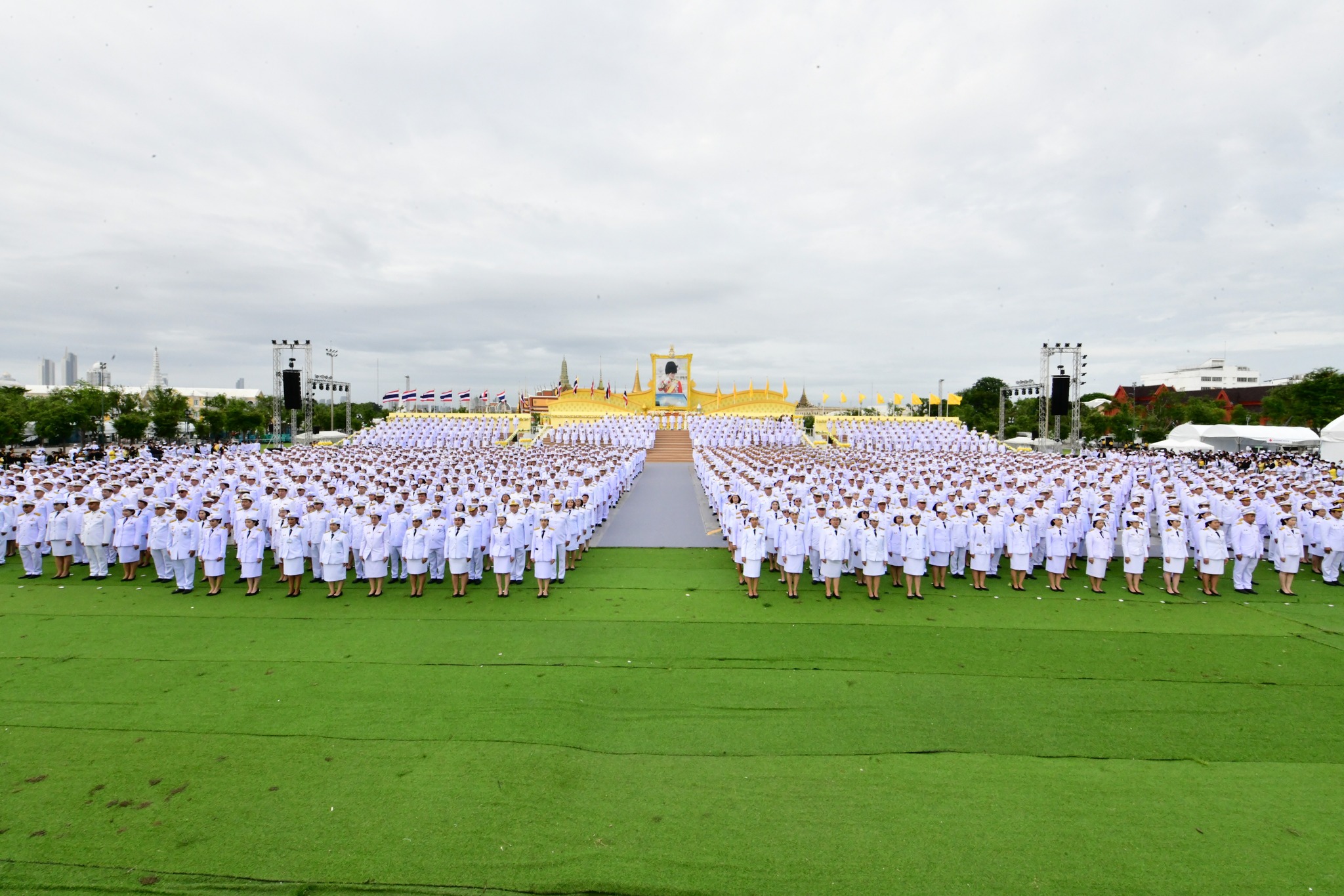 เมื่อวันจันทร์ที่ 28 กรกฎาคม 2568 รองศาสตราจารย์ ดร.ประมุข อุณหเลขกะ อธิการบดีมหาวิทยาลัยเทคโนโลยีราชมงคลสุวรรณภูมิ มอบหมายให้ผู้ช่วยศาสตราจารย์เฉลิม ขุนเอียด รองอธิการบดี พร้อมด้วยคณะผู้บริหาร ได้แก่ดร.ณรงค์ศักดิ์ แสงป้อม รองอธิการบดี นายภูริทัต อยู่สบาย ผู้อำนวยการกองกลาง นางสาวมณฑิรา สาระพันธ์ ผู้อำนวยการกองบริหารทรัพยากรนนทบุรี และนางธัญญารัตน์ สาริกา ผู้อำนวยการกองบริหารทรัพยากรสุพรรณบุรี เข้าร่วม พิธีถวายสัตย์ปฏิญาณเพื่อเป็นข้าราชการที่ดีและพลังของแผ่นดิน เฉลิมพระเกียรติ พระบาทสมเด็จพระเจ้าอยู่หัว เนื่องในโอกาสพระราชพิธีมหามงคลเฉลิมพระชนมพรรษา 28 กรกฎาคม 2568 ณ เวทีใหญ่ ท้องสนามหลวง กรุงเทพฯ พิธีดังกล่าวจัดขึ้นเพื่อแสดงออกถึงความจงรักภักดี ความมุ่งมั่นในการปฏิบัติหน้าที่อย่างซื่อสัตย์สุจริต และเป็นแบบอย่างที่ดีแก่ประชาชน เพื่อร่วมกันสืบสานพระราชปณิธานในการสร้างคุณูปการแก่ประเทศชาติอย่างยั่งยืน