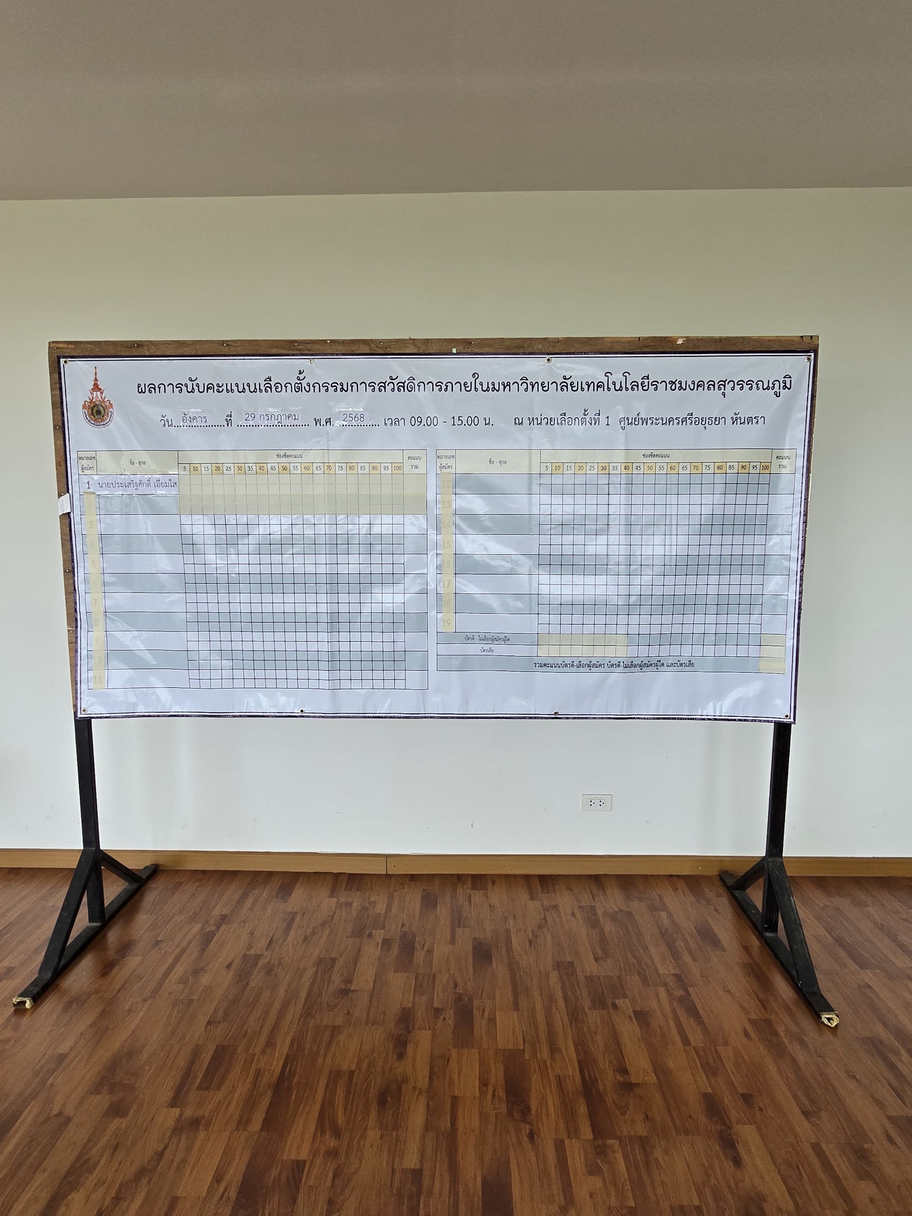 เมื่อวันอังคารที่ 29 กรกฎาคม 2568 กองบริหารงานบุคล มหาวิทยาลัยเทคโนโลยีราชมงคลสุวรรณภูมิ ดำเนินการจัดเลือกตั้งกรรมการสวัสดิการภายในมหาวิทยาลัยเทคโนโลยีราชมงคลสุวรรณภูมิ เพื่อคัดเลือกบุคลากรผู้มีความรู้ ความสามารถ และได้รับความไว้วางใจจากบุคลากรให้ทำหน้าที่เป็นกรรมการสวัสดิการของมหาวิทยาลัย ตลอดจนสนับสนุนการดำเนินงานด้านสวัสดิการแก่บุคลากรได้อย่างโปร่งใส ให้มีประสิทธิภาพ และสอดคล้องกับความต้องการของบุคลากรภายในองค์กร โดยมีนายประเสริฐศักดิ์ เอี่ยมใส ผู้ลงสมัครเข้ารับการเลือกตั้งกรรมการสวัสดิการภายในมหาวิทยาลัยเทคโนโลยีราชมงคลสุวรรณภูมิ ณ มหาวิทยาลัยเทคโนโลยีราชมงคลสุวรรณภูมิ ทั้ง 4 ศูนย์พื้นที่