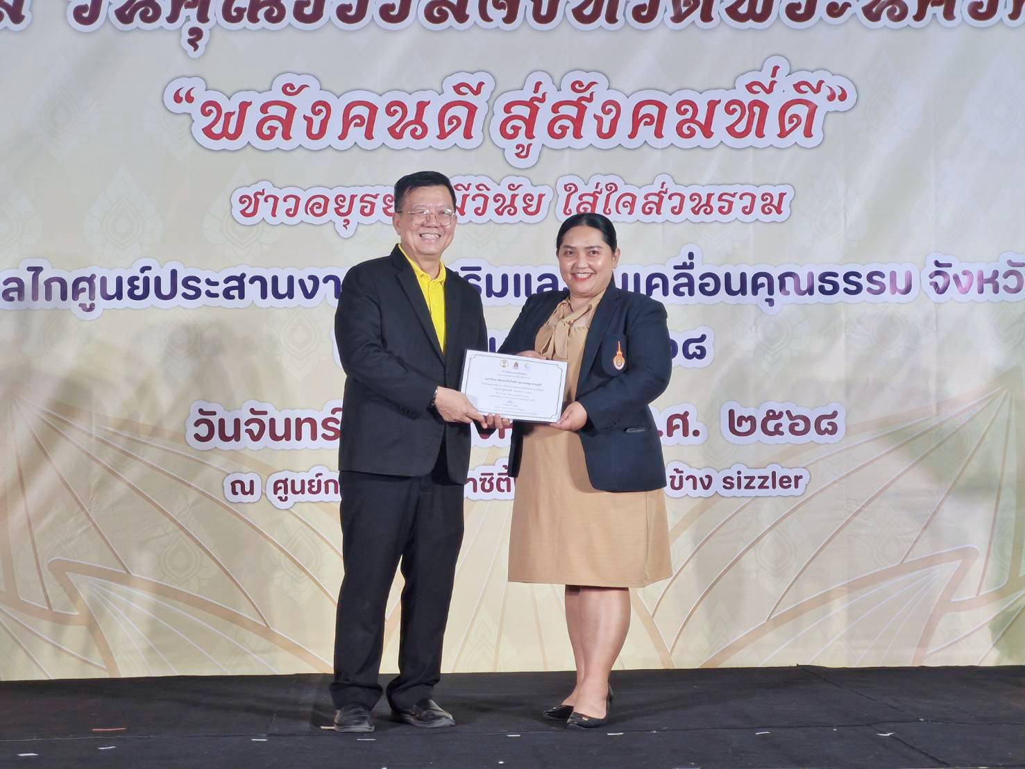 เมื่อวันจันทร์ที่ 4 สิงหาคม 2568 รองศาสตราจารย์ ดร.ประมุข อุณหเลขกะ อธิการบดีมหาวิทยาลัยเทคโนโลยีราชมงคลสุวรรณภูมิ มอบหมายให้ นางสาวชวนพิศ เปรมกมล หัวหน้างานส่งเสริมและพัฒนาศักยภาพนักศึกษา กองพัฒนานักศึกษา พร้อมด้วยตัวแทนนักศึกษา ร่วมงานและจัดบูธนิทรรศการ วันคุณธรรมจังหวัดพระนครศรีอยุธยา “ พลังคนดี สู่สังคมที่ดี” ภายใต้โครงการส่งเสริมหนุนกลไกศูนย์ประสานงานส่งเสริมและขับเคลื่อนคุณธรรม โดยมีนายธีรศักดิ์ โฉมศิริ รองผู้ว่าราชการจังหวัดพระนครศรีอยุธยาเป็นประธาน เพื่อเป็นการรำลึกถึงวันคุณธรรมจังหวัดพระนครศรีอยุธยาซึ่งเป็นจังหวัดแรกของประเทศไทยที่ได้ประกาศให้มีคุณธรรมขึ้นและเพื่อเกิดการเชื่อมโยงเครือข่ายและเป็นเวทีกลางของหน่วยงาน องค์กรเครือข่ายทุกภาคส่วนในการแลกเปลี่ยนเรียนรู้การขับเคลื่อนและพัฒนาคุณธรรมในระดับองค์กรและพื้นที่จังหวัดพระนครศรีอยุธยา ณ บริเวณ ชั้น 2 ศูนย์การค้าอยุธยา ซิตี้พาร์ค จังหวัดพระนครศรีอยุธยา