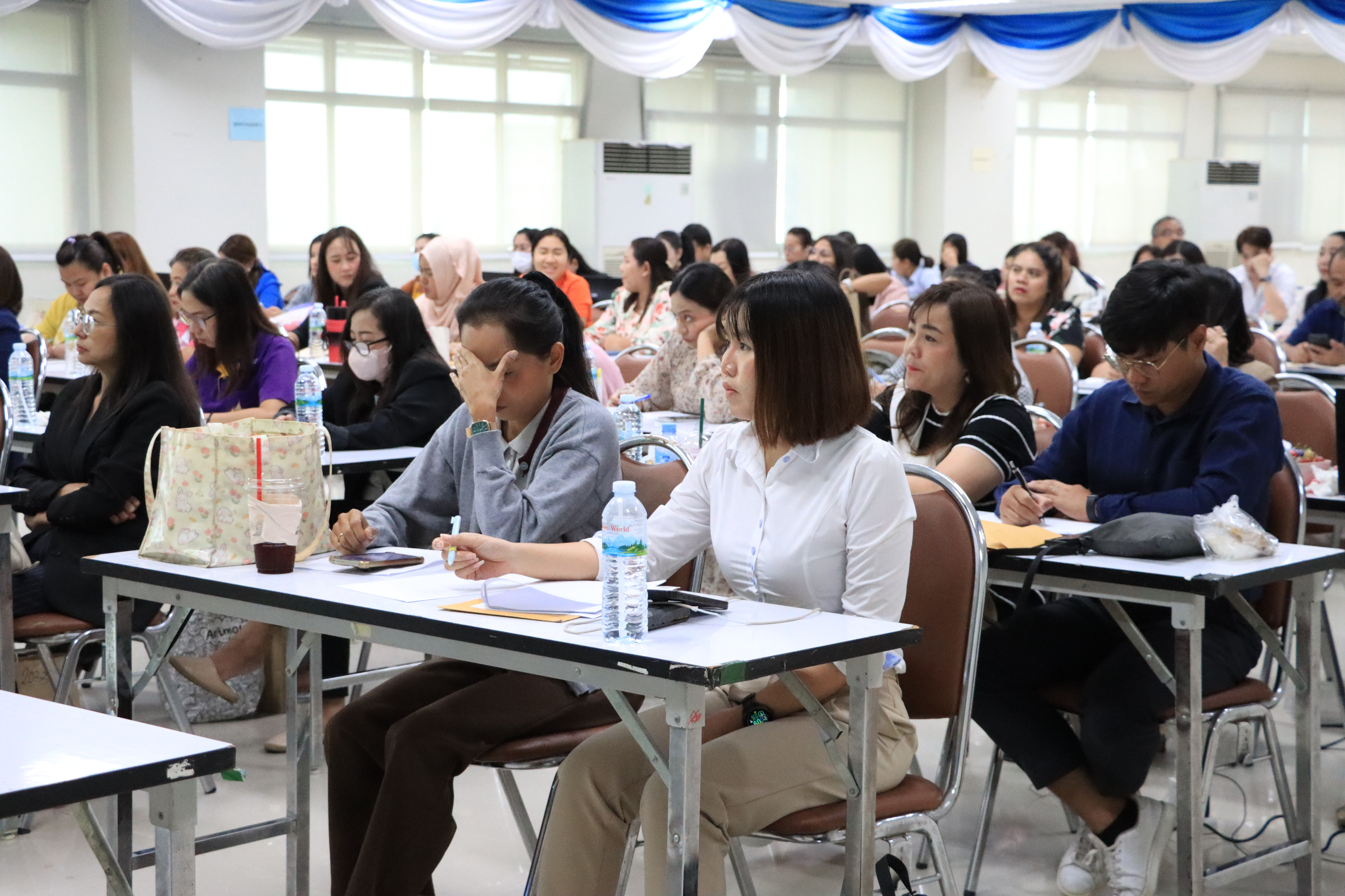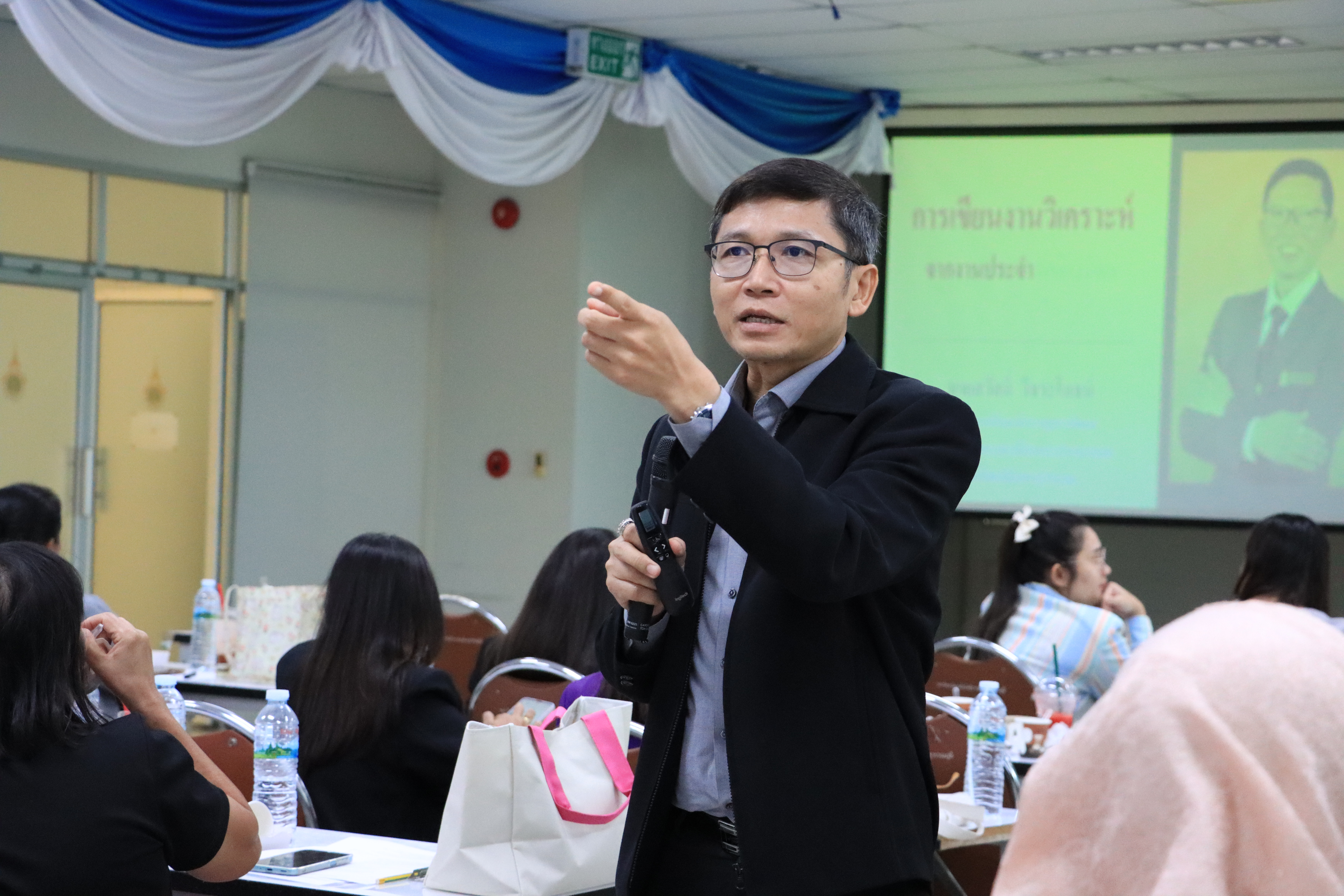 เมื่อวันพฤหัสบดีที่ 7 สิงหาคม 2568 กองบริหารงานบุคคล มหาวิทยาลัยเทคโนโลยีราชมงคลสุวรรณภูมิ จัดโครงการอบรมสัมมนาเชิงปฏิบัติการ “การทำผลงานเพื่อขอกำหนดตำแหน่งสูงขึ้นของบุคลากรสายสนับสนุน" โดยมีนางฤทัยชนก โพธิ์งาม ผู้อำนวยการกองพัฒนานักศึกษา เป็นประธานเปิดโครงการและกล่าวต้อนรับ รองศาสตราจารย์ ดร.ประสาท เนืองเฉลิม อาจารย์ประจำคณะศึกษาศาสตร์ พร้อมด้วยนายสวัสดิ์ วิชระโภชน์ ผู้อำนวยการกองทะเบียนและประมวลผล จากมหาวิทยาลัยมหาสารคาม ให้เกียรติเป็นวิทยากรบรรยาย เรื่องความรู้เบื้องต้นและแนวทางในการจัดทำผลงานเชิงวิเคราะห์ หรือสังเคราะห์ เพื่อสร้างความรู้ความเข้าใจเกี่ยวกับแนวทางการจัดทำผลงาน เทคนิค และวิธีการจัดทำผลงานลักษณะต่างๆ เพื่อให้ผู้เสนอขอกำหนดตำแหน่งสูงขึ้น สามารถจัดทำผลงานประกอบการขอกำหนดตำแหน่งสูงขึ้นเพิ่มเติมได้อย่างถูกต้องและครบถ้วน เป็นมาตรฐานเดียวกัน ซึ่งมีบุคลากรเข้าร่วมอบรมกว่า 100 คน ณ ห้องประชุมนนทรี ชั้น 8 อาคารเทคโนโลยีสารสนเทศ มหาวิทยาลัยเทคโนโลยีราชมงคลสุวรรณภูมิ ศูนย์พระนครศรีอยุธยา หันตรา