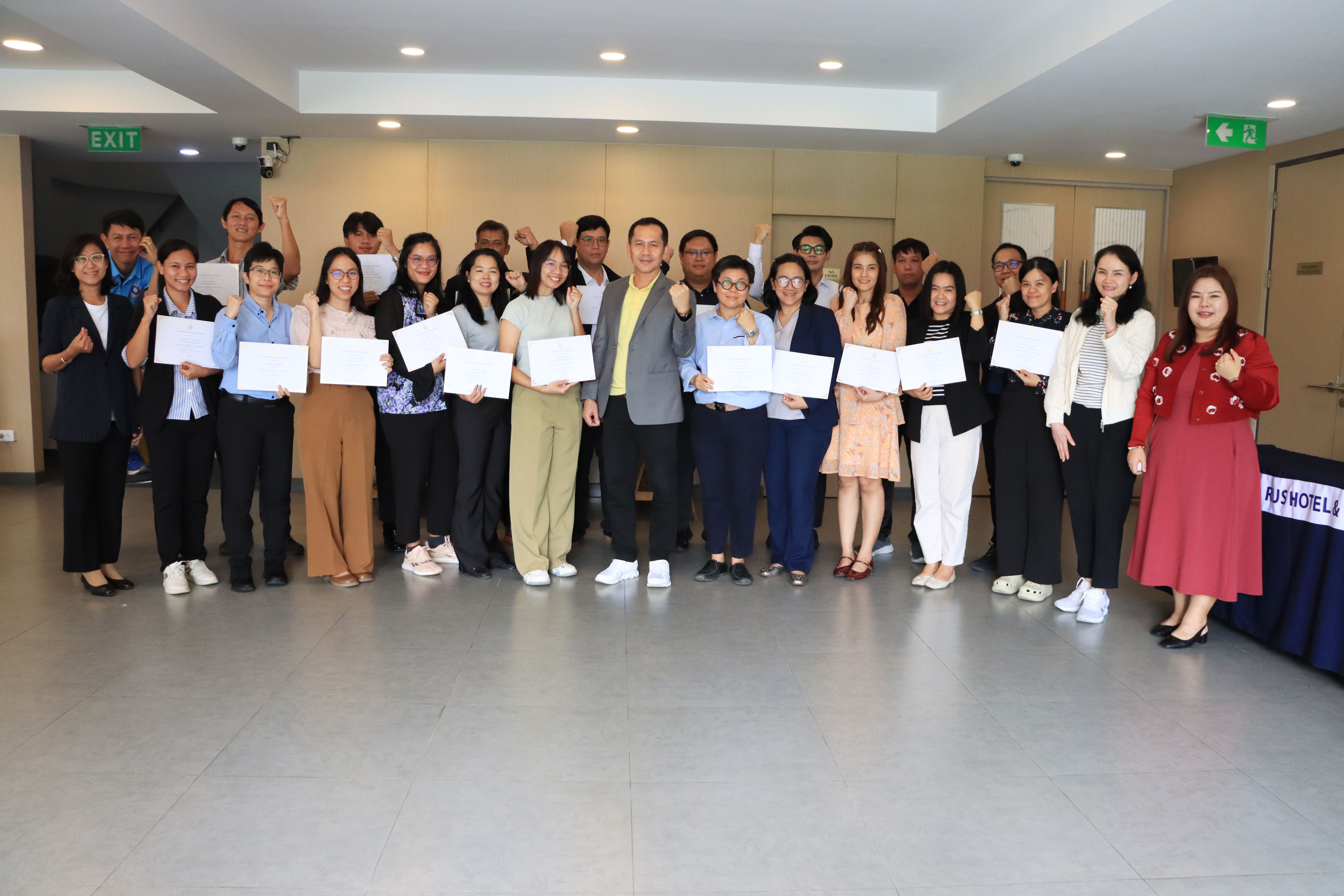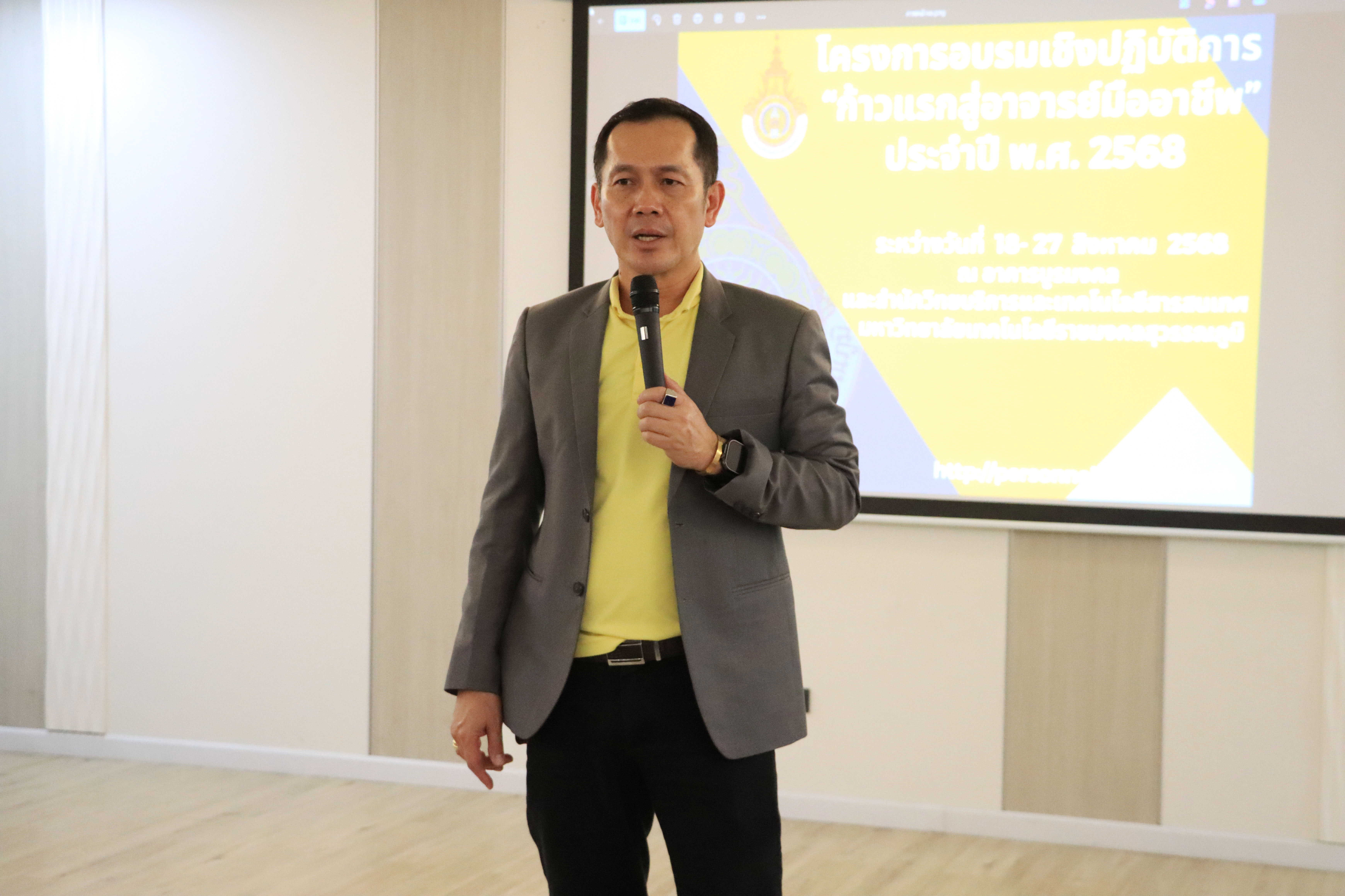 เมื่อวันพุธที่ 27 สิงหาคม 2568 รองศาสตราจารย์ ดร.ประมุข อุณหเลขกะ อธิการบดีมหาวิทยาลัย มอบหมายให้ ดร.กฤตย์ตนัย ธารารัตนสุวรรณ ผู้อำนวยการสำนักวิทยบริการและเทคโนโลยีสารสนเทศ กล่าวปิดการอบรมและมอบเกียรติบัตรแก่ผู้ผ่านการอบรม เชิงปฏิบัติการ “ก้าวแรกสู่อาจารย์มืออาชีพ” ประจำปี พ.ศ. 2568 จัดขึ้นเพื่อเตรียมความพร้อมและพัฒนาศักยภาพบุคลากรสายวิชาการให้ก้าวสู่การเป็นครูมืออาชีพที่มีคุณภาพ มีจรรยาบรรณ และสามารถตอบโจทย์การศึกษาในยุคปัจจุบันได้อย่างมีประสิทธิภาพ การอบรมครั้งนี้มุ่งเน้นการเสริมสร้างความรู้และทักษะด้านวิชาชีพครูในหลายมิติ อาทิ หลักคุณธรรมจรรยาบรรณวิชาชีพ การออกแบบหลักสูตร การจัดการเรียนรู้ จิตวิทยาพัฒนาการและการแนะแนว การใช้สื่อและเทคโนโลยีในชั้นเรียน การวัดและประเมินผลการเรียนรู้ตามกรอบ TPCK แนวคิด STEM การดำเนินการแบบ PLC ทักษะการนิเทศการสอนงาน ตลอดจนหลักสูตรวิชาชีพครูตามเกณฑ์มาตรฐานของกระทรวงศึกษาธิการ รวมชั่วโมงการอบรมไม่น้อยกว่า 60 ชั่วโมงโดยผู้มีผู้เข้าอบรมที่ผ่านการประเมินความรู้ในศาสตร์วิชาชีพครู และได้รับเกียรติบัตร กว่า 20 คน ท่ามกลางบรรยากาศอบอุ่นและเปี่ยมด้วยความภาคภูมิใจ