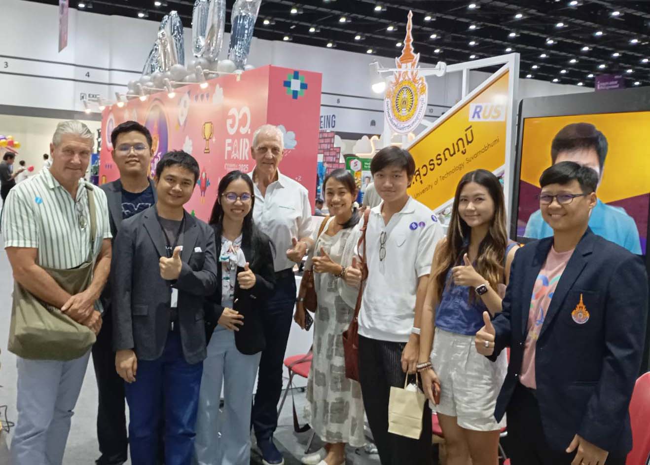 เมื่อวันจันทร์ที่ 11 สิงหาคม 2568 มหาวิทยาลัยเทคโนโลยีราชมงคลสุวรรณภูมิ เข้าร่วมจัดบูธแสดงผลงานวิจัยและนวัตกรรมของคณะวิทยาศาสตร์และเทคโนโลยีในงาน อว.แฟร์ (SCI POWER FOR FUTURE THAILAND) “ร่วมพลังสร้างสรรค์อนาคต” ซึ่งเป็นส่วนหนึ่งของงานมหกรรมวิทยาศาสตร์และเทคโนโลยีแห่งชาติ ประจำปี 2568 (National Science Technology Fair 2025) ณ ศูนย์การประชุมแห่งชาติสิริกิติ์ กรุงเทพฯ นำทีมโดย ดร.ศิวัฒน์ พลอินทร์ รองผู้อำนวยการสถาบันวิจัยและพัฒนา อาจารย์ปัทมา เซ้งอาศัย ผู้ช่วยคณบดี ดร.ทรงพัน โลกาวี ผู้ช่วยคณบดี และดร.รัตติกาล น้อยเต็ม อาจารย์คณะวิทยาศาสตร์และเทคโนโลยี มหาวิทยาลัยเทคโนโลยีราชมงคลสุวรรณภูมิ โดยในวันนี้มีผู้สนใจเข้าร่วมเยี่ยมชมบูธนิทรรศการของมหาวิทยาลัยที่จัดแสดงผลงานระบบสุขภาพอัจฉริยะด้วย IoT และ AI วิเคราะห์ท่าทางแบบ 360 องศาของคณะวิทยาศาสตร์และเทคโนโลยีทั้งชาวไทยและชาวต่างชาติ กิจกรรมดังกล่าวจัดขึ้นเป็นวันที่ 3 ของงาน ซึ่งตลอดการจัดแสดงได้รับความสนใจจากนักเรียน นักศึกษา บุคลากรด้านวิทยาศาสตร์ และประชาชนทั่วไปอย่างต่อเนื่อง