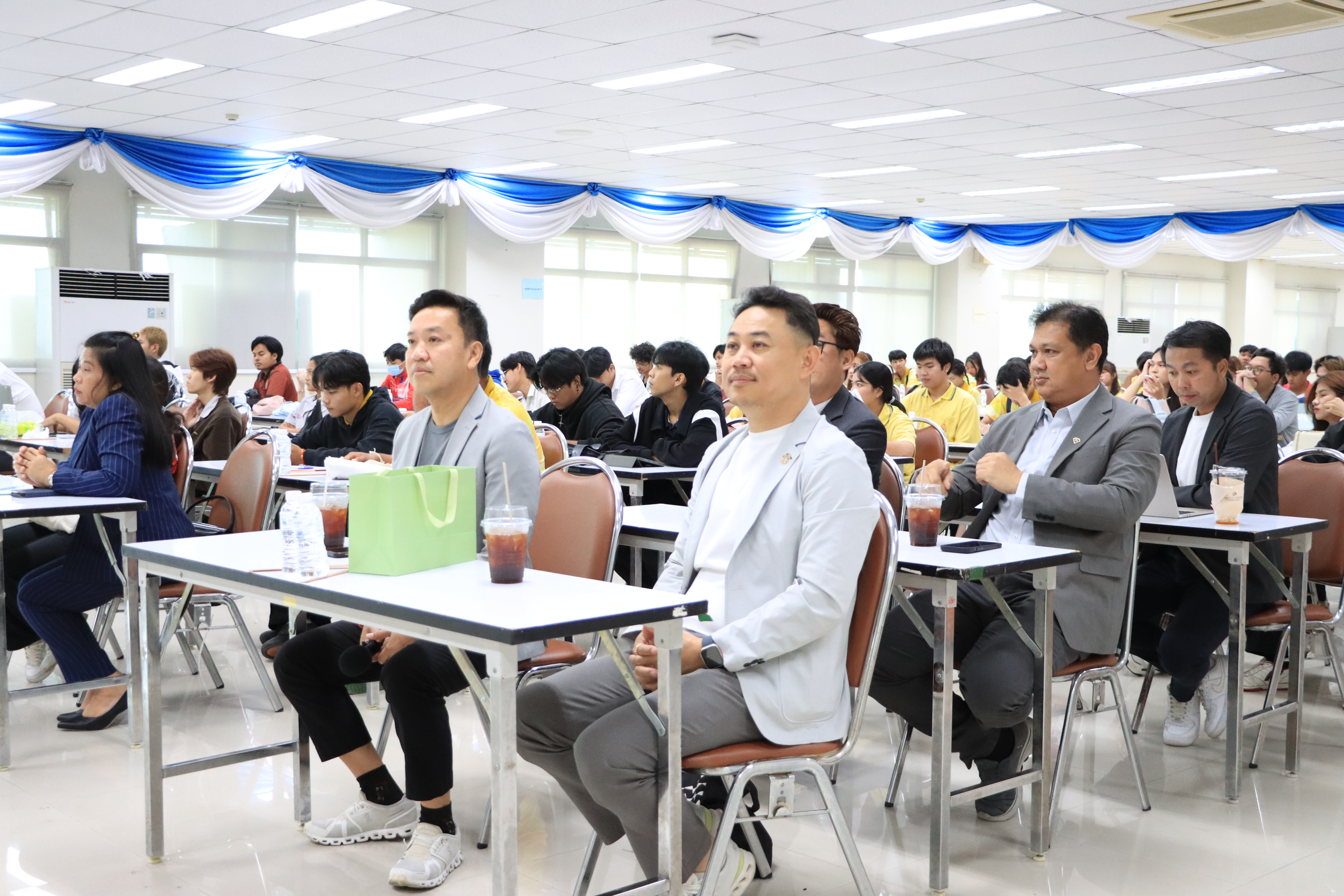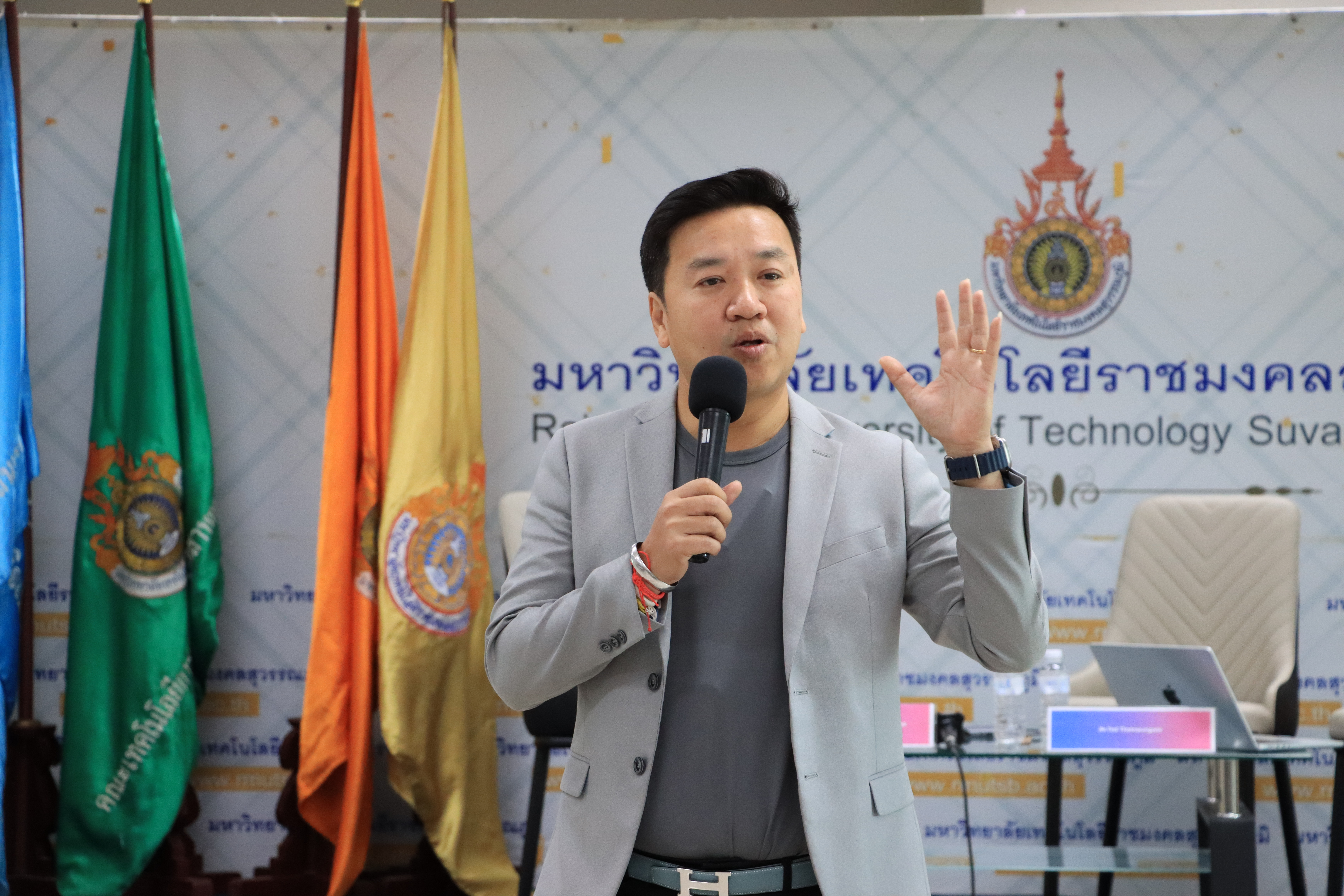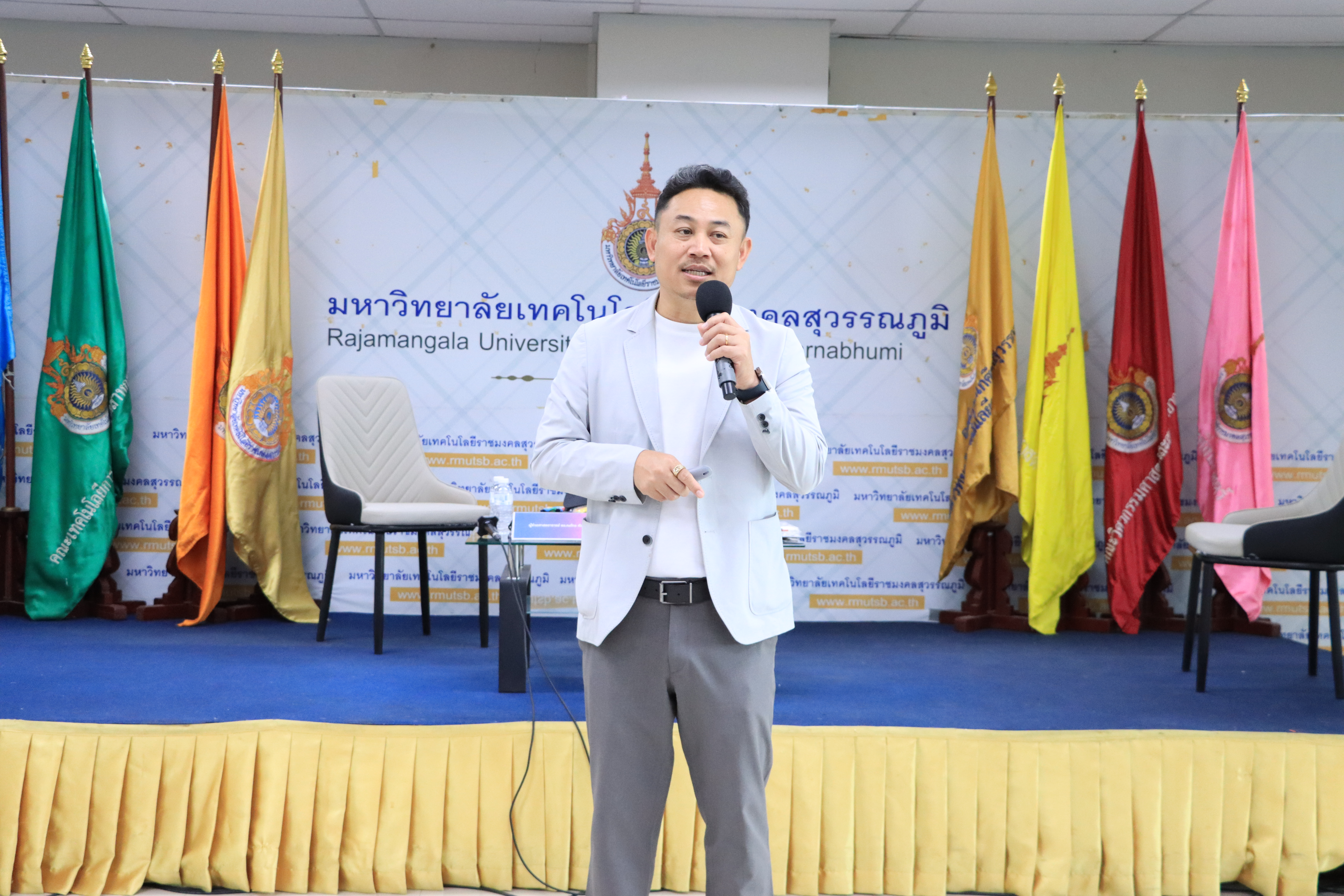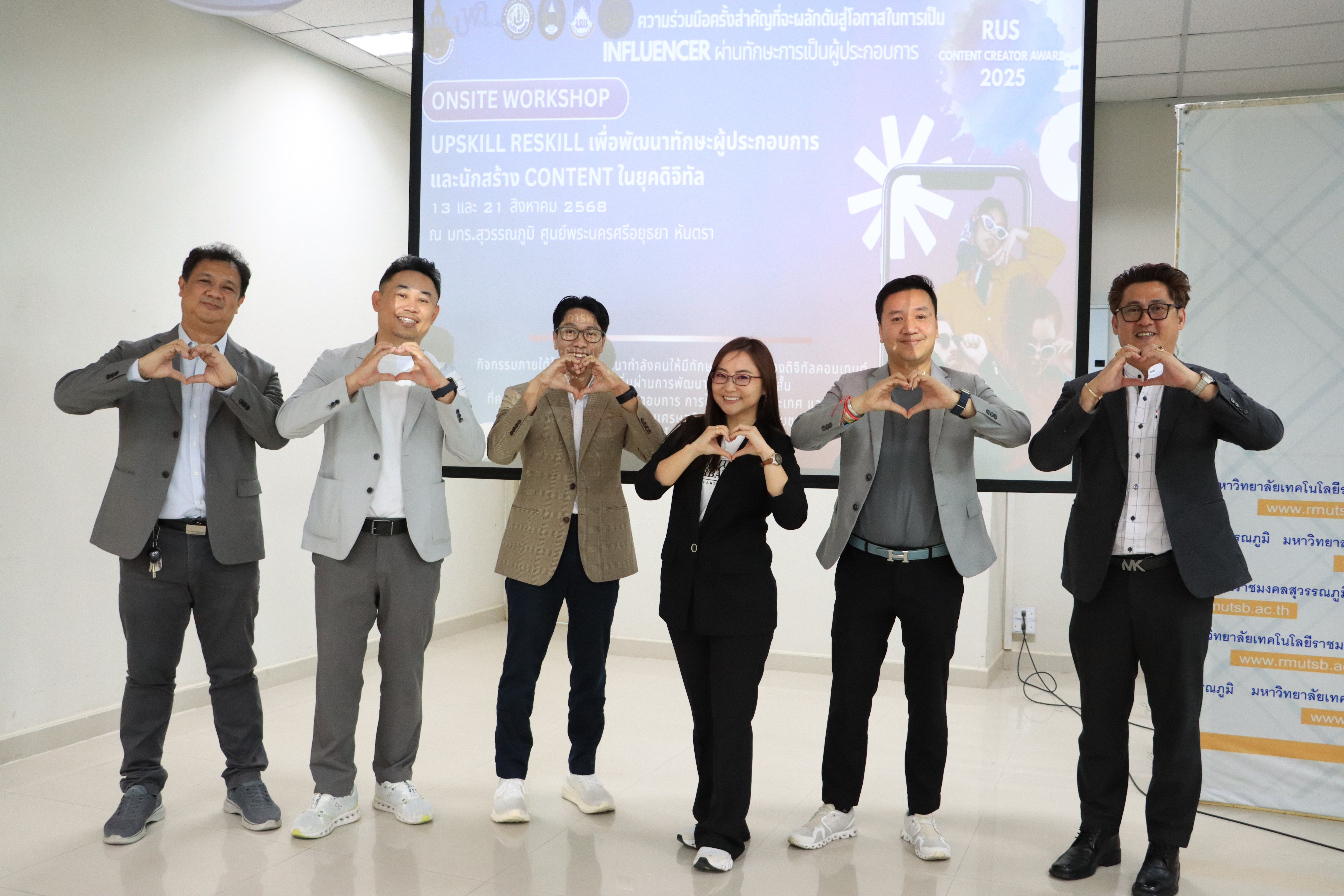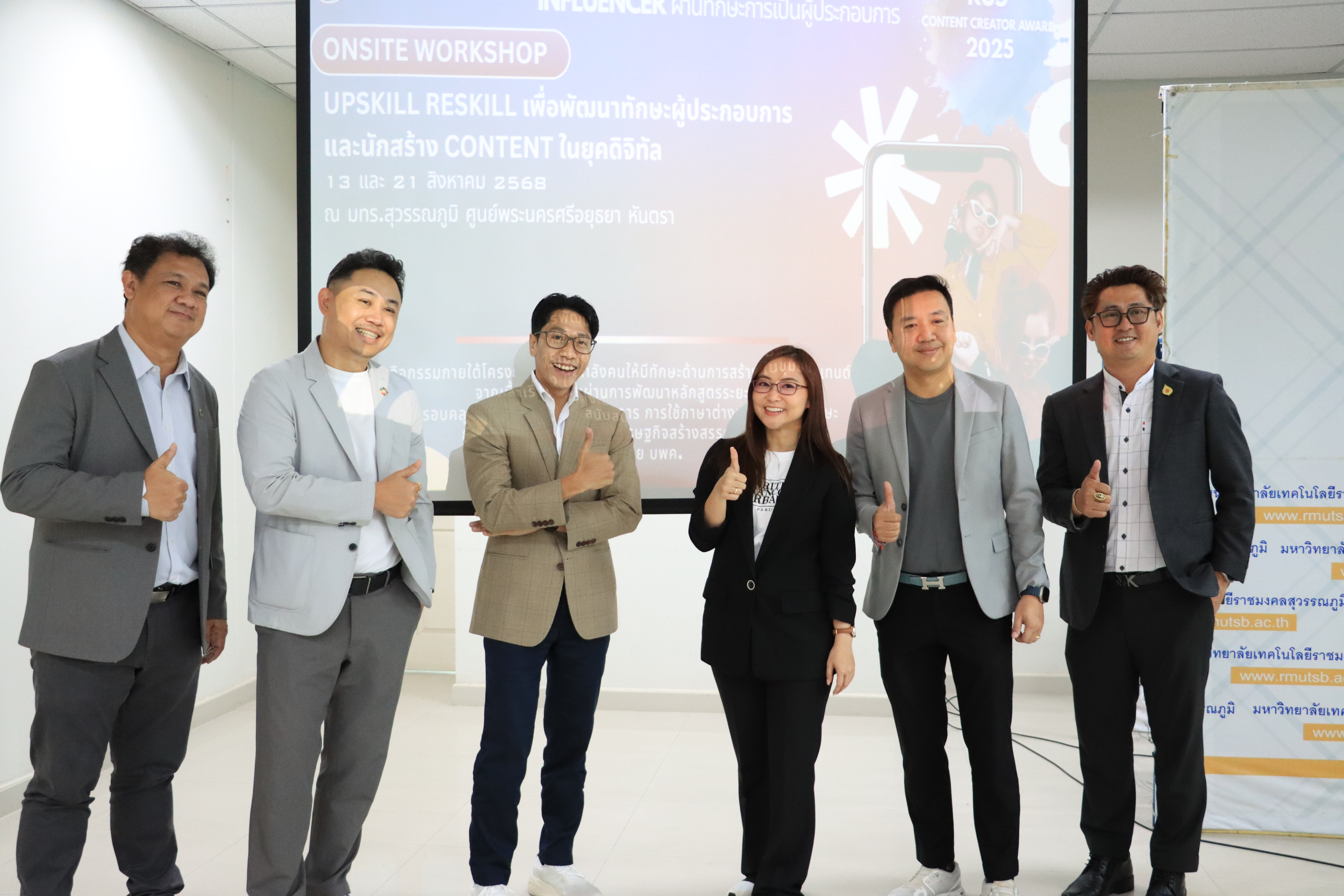 เมื่อวันพุธที่ 13 สิงหาคม 2568 รองศาสตราจารย์ ดร.ประมุข อุณหเลขกะ อธิการบดี มหาวิทยาลัยเทคโนโลยีราชมงคลสุวรรณภูมิ เป็นประธานกล่าวต้อนรับเปิดบรรยายเชิงปฏิบัติการนักสร้าง content ในยุคดิจิทัล ONSITE WORKSHOP Upskill Reskill เพื่อพัฒนาทักษะผู้ประกอบการและนักสร้าง content ในยุคดิจิทัล ภายใต้โครงการพัฒนากำลังคนให้มีทักษะด้านการสร้างดิจิทัลคอนเทนต์ จากเนื้อหาท้องถิ่น ผ่านการพัฒนาหลักสูตรระยะสั้นที่ครอบคลุมทักษะการเป็นผู้ประกอบการ การใช้ภาษาต่างประเทศและทักษะการเล่าเรื่อง เพื่อส่งเสริมเศรษฐกิจสร้างสรรค์ในชุมชน โดยได้รับเกียรติจาก Mr.Ted Thetnaungsoe, Co-Founder & Managing Partner Venture Spark บรรยาย"Opportunities for University Students in Launching Startups" และผู้ช่วยศาสตราจารย์ ดร.ณภัทร เรืองนภากุล รองคณบดีคณะสารสนเทศและการสื่อสาร พร้อมด้วยคุณกรกช เจริญทรัพย์ กองเทคโนโลยีดิจิทัล มหาวิทยาลัยแม่โจ้ ผู้ช่วยศาสตราจารย์ ดร.ศิริทัศน์ เขตตานุรักษ์ อาจารย์กรกต อากาศอำนวย อาจารย์ประจำคณะมนุษยศาสตร์และสังคมศาสตร์ มหาวิทยาลัยบูรพา ผู้ช่วยศาสตราจารย์ ดร.ภาสพิรุฬห์ วัชรศรีสำเริง รองอธิการบดี มหาวิทยาลัยเทคโนโลยีราชมงคลสุวรรณภูมิ พร้อมด้วยอาจารย์ธานี สมวงศ์ รองอธิการบดี ผู้ช่วยศาสตราจารย์สัญญา คำจริง รองอธิการบดี ผู้ช่วยศาสตราจารย์วิชัย นระมาตย์ รองผู้อำนวยการสำนักวิทยาบริการและเทคโนโลยีสารสนเทศ ผู้ช่วยศาสตราจารย์ ว่าที่ร้อยตรี ดร.ธนรัตน์ รัตนพงศ์ธระ หัวหน้าสาขาวิชาการท่องเที่ยวและการโรงแรม คณะศิลปศาสตร์ และ คุณชวนพิศ เปรมกมล หัวหน้างานกองพัฒนานักศึกษา บรรยายและฝึกปฏิบัติการออกแบบ Marketing Content Design Board และการออกแบบ Digital Contents เพื่อ ส่งเสริมและพัฒนาทักษะการสร้างสรรค์ดิจิทัลคอนเทนต์ ให้กับผู้อบรมในการเป็นนักสร้างคอนเทนต์ในยุคดิจิทัล ซึ่งมีบุคลากรและนักศึกษาเข้าร่วมฟังบรรยายกว่า 120 คน ณ ห้องประชุมนนทรี ชั้น 8 อาคารเทคโนโลยีสารสนเทศ มหาวิทยาลัยเทคโนโลยีราชมงคลสุวรรณภูมิ ศูนย์พระนครศรีอยุธยา หันตรา