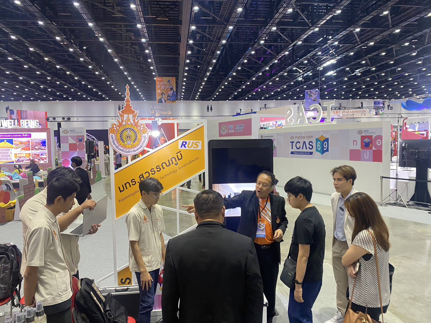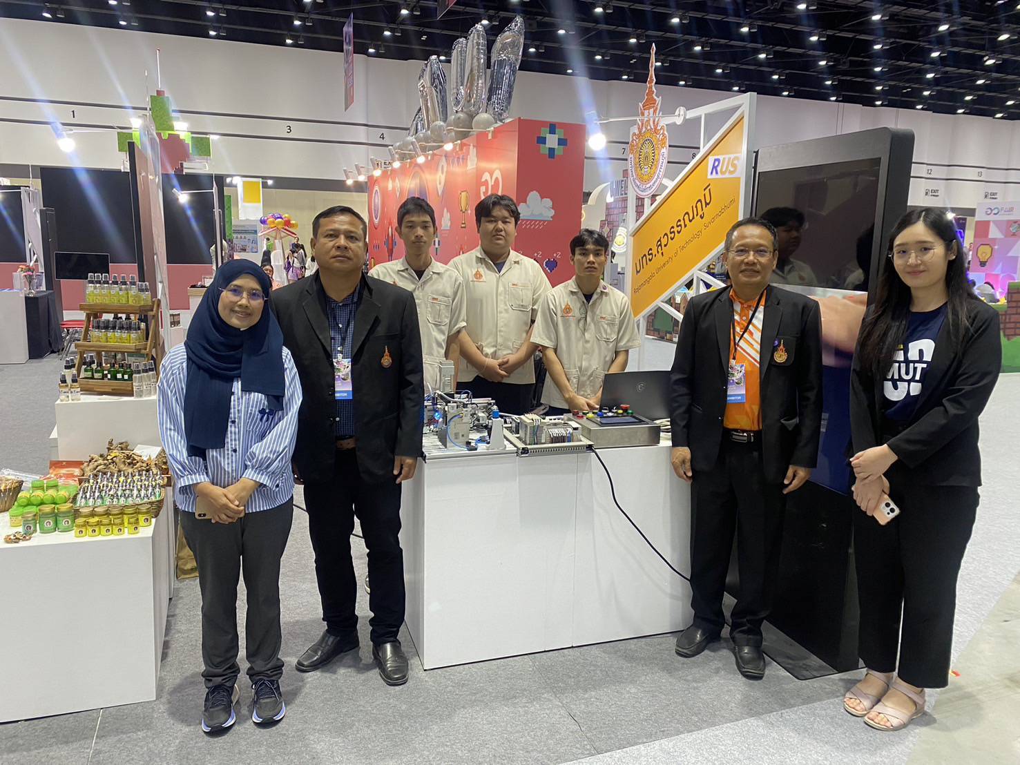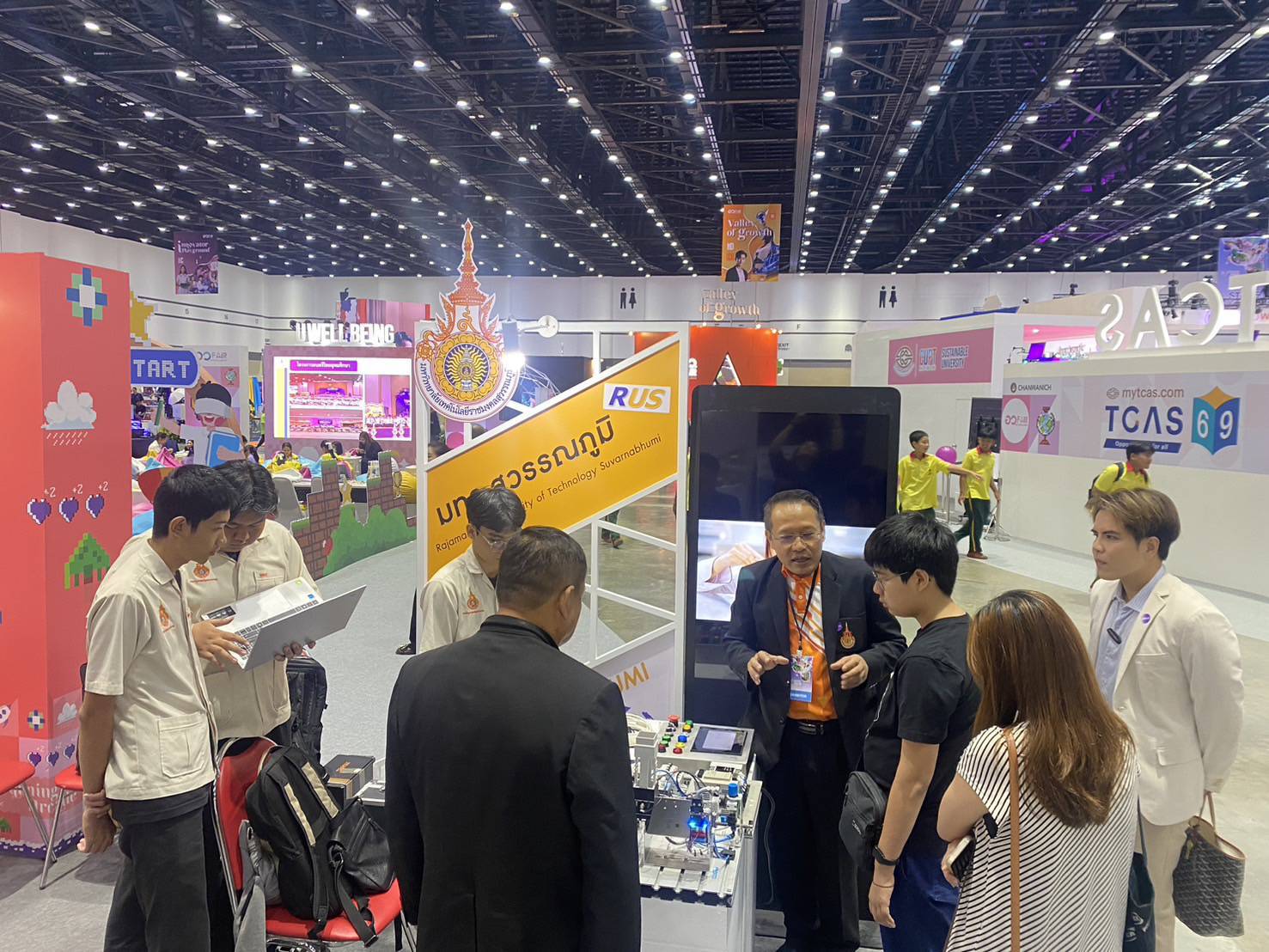 เมื่อวันพุธที่ 13 สิงหาคม 2568 รองศาสตราจารย์ ดร.ประมุข อุณหเลขกะ อธิการบดีมหาวิทยาลัยเทคโนโลยีราชมงคลสุวรรณภูมิ มอบหมายให้ผู้ช่วยศาสตราจารย์ ดร.ณัฏฐ์ สิริวรรธนานนท์ พร้อมด้วยผู้ช่วยศาสตราจารย์รุ่งโรจน์ แก้วศรีงาม อาจารย์ประจำคณะครุศาสตร์อุตสาหกรรม บุคลากรสถาบันวิจัยและพัฒนา และนักศึกษา เข้าร่วมจัดบูธแสดงผลงานวิจัยและนวัตกรรม “ชุดเชื่อมต่อสายพานลำเลียงอัตโนมัติด้วยพีแอลซี” ในงาน อว.แฟร์ (SCI POWER FOR FUTURE THAILAND) “ร่วมพลังสร้างสรรค์อนาคต” ซึ่งเป็นส่วนหนึ่งของ งานมหกรรมวิทยาศาสตร์และเทคโนโลยีแห่งชาติ ประจำปี 2568 ณ ศูนย์การประชุมแห่งชาติสิริกิติ์ กรุงเทพมหานคร ซึ่งมีผู้ที่เยื่ยมชมบูธของคณะครุศาสตร์อุตสาหกรรมทั้งชาวไทยและชาวต่างชาติ กิจกรรมดังกล่าวจัดขึ้นเป็นวันที่ 5 ของงาน ซึ่งตลอดการจัดแสดงได้รับความสนใจจากนักเรียน นักศึกษา บุคลากรด้านวิทยาศาสตร์ และประชาชนทั่วไปอย่างต่อเนื่อง