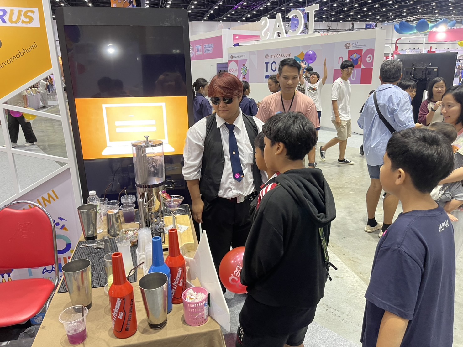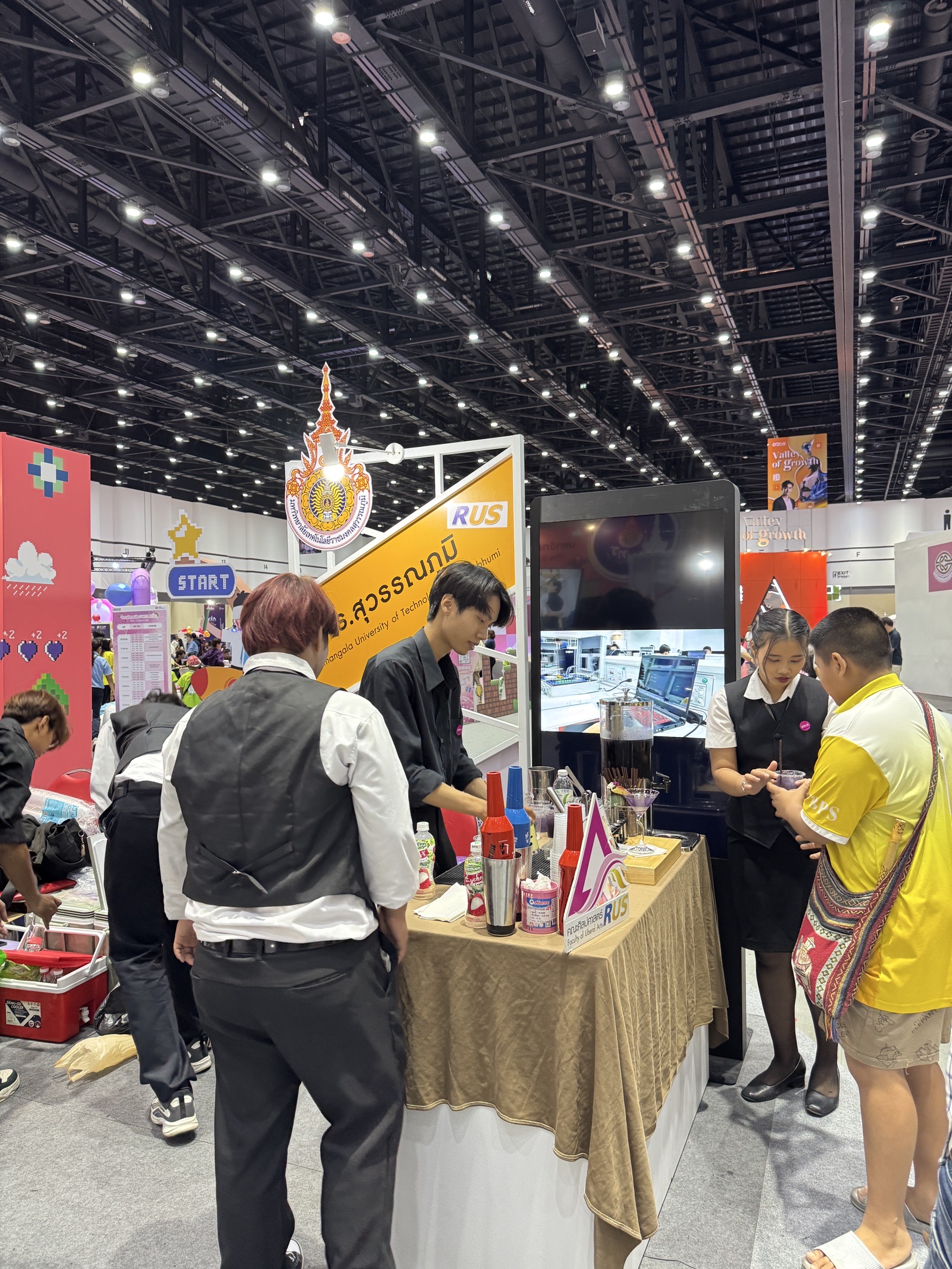 เมื่อวันอาทิตย์ที่ 17 สิงหาคม 2568 รองศาสตราจารย์ ดร.ประมุข อุณหเลขกะ อธิการบดีมหาวิทยาลัยเทคโนโลยีราชมงคลสุวรรณภูมิ มอบหมายให้อาจารย์ธง คำเกิด รองผู้อำนวยการสถาบันวิจัยและพัฒนา พร้อมด้วยอาจารย์รามณรงค์ นิลกำแหง อาจารย์ประจำคณะศิลปศาสตร์ และนักศึกษา เข้าร่วมจัดบูธแสดงผลงานวิจัยและนวัตกรรม “Creative Modern Drinks” ในงาน อว.แฟร์ (SCI POWER FOR FUTURE THAILAND) “ร่วมพลังสร้างสรรค์อนาคต” ซึ่งเป็นส่วนหนึ่งของ งานมหกรรมวิทยาศาสตร์และเทคโนโลยีแห่งชาติ ประจำปี 2568 ณ ศูนย์การประชุมแห่งชาติสิริกิติ์ กรุงเทพฯ กิจกรรมในครั้งนี้จัดขึ้นเป็นวันที่ 9 ซึ่งเป็นวันสุดท้ายของงาน และได้รับความสนใจอย่างต่อเนื่องจากนักเรียน นักศึกษา บุคลากรด้านวิทยาศาสตร์ และประชาชนทั่วไปที่เข้ามาเยี่ยมชม ชิม และถือเป็นเวทีสำคัญในการแสดงศักยภาพของนักศึกษาและคณาจารย์ ในการสร้างสรรค์นวัตกรรมที่สามารถต่อยอดได้จริง และสอดคล้องกับทิศทางของประเทศในการพัฒนาเศรษฐกิจและสังคมด้วยวิทยาศาสตร์ เทคโนโลยี และนวัตกรรม
