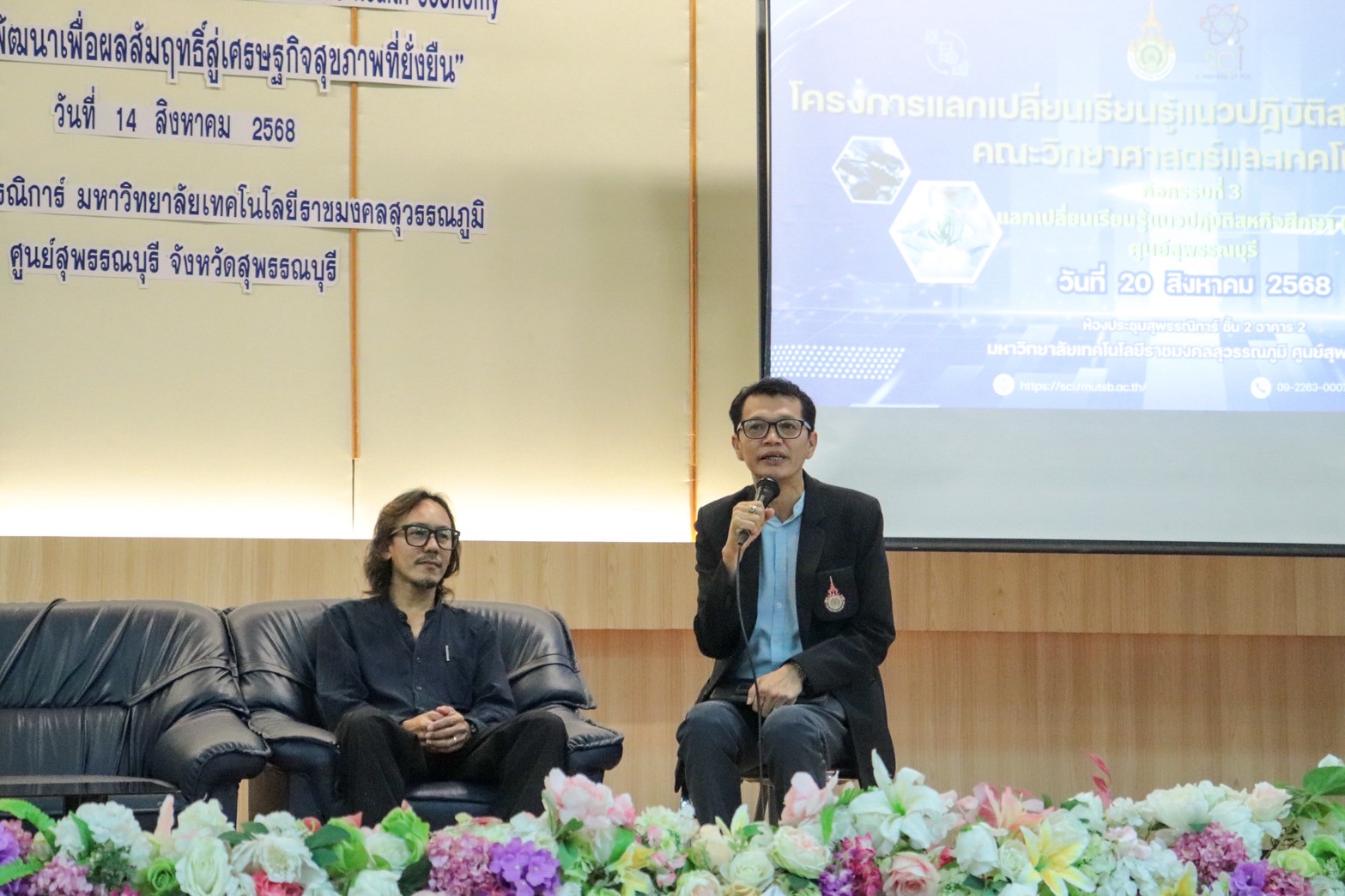 เมื่อวันพุธที่ 20 สิงหาคม 2568 ผู้ช่วยศาสตราจารย์ ดร.เจษฎา จันทร์ผา คณบดีคณะวิทยาศาสตร์และเทคโนโลยี มหาวิทยาลัยเทคโนโลยีราชมงคลสุวรรณภูมิ มอบหมายให้ ผู้ช่วยศาสตราจารย์ จีรศักดิ์ พุ่มเจริญ รองคณบดีประจำศูนย์สุพรรณบุรี เป็นประธานเปิด โครงการแลกเปลี่ยนเรียนรู้แนวปฏิบัติสหกิจศึกษา (KM) ของคณะวิทยาศาสตร์และเทคโนโลยี พร้อมด้วย คณาจารย์ และ นักศึกษา เข้าร่วมกิจกรรมดังกล่าว เพื่อเตรียมความพร้อมนักศึกษาก่อนออกปฏิบัติงานสหกิจศึกษา โดยมุ่งให้ทราบกฎระเบียบและการวางตัวที่เหมาะสม ในการทำงานในแต่ละสถานประกอบการ อีกทั้งยังเป็นเวทีรับฟังจุดเด่นและจุดที่ควรพัฒนาของนักศึกษาจากมุมมองของสถานประกอบการ โดยได้รับเกียรติจากวิทยากรผู้ทรงคุณวุฒิ ดังนี้ คุณนรินทร์ สุนทรเวชพงษ์ CSR บริษัท ไออาร์พีซี จำกัด (มหาชน) คุณณิชกานต์ นิยติวัฒน์ชาญชัย CEO กลุ่มบริษัท เพียวฟู้ดส์ จำกัด คุณชิตพล ทับทิมทอง กรรมการ บริษัท อีซี่ ไลฟ์ สตูดิโอ จำกัด อาจารย์สิทธิกร มังคลา และ อาจารย์ฐากร อยู่วิจิตร อาจารย์ประจำสาขาวิชาเทคโนโลยีดิจิทัล ณ ห้องประชุมสุพรรณิการ์ ชั้น 2 มหาวิทยาลัยเทคโนโลยีราชมงคลสุวรรณภูมิ ศูนย์สุพรรณบุรี