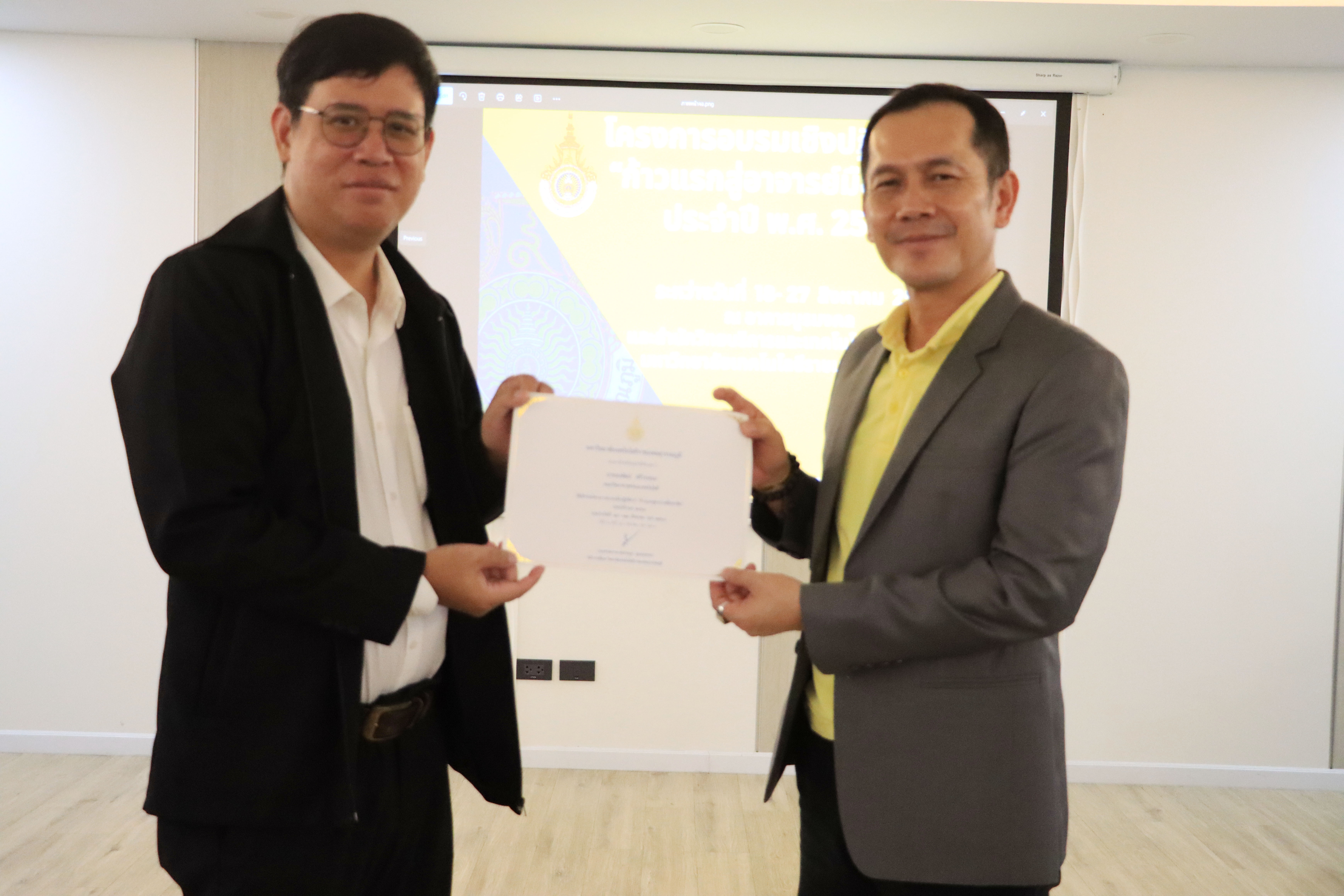 เมื่อวันพุธที่ 27 สิงหาคม 2568 รองศาสตราจารย์ ดร.ประมุข อุณหเลขกะ อธิการบดีมหาวิทยาลัย มอบหมายให้ ดร.กฤตย์ตนัย ธารารัตนสุวรรณ ผู้อำนวยการสำนักวิทยบริการและเทคโนโลยีสารสนเทศ กล่าวปิดการอบรมและมอบเกียรติบัตรแก่ผู้ผ่านการอบรม เชิงปฏิบัติการ “ก้าวแรกสู่อาจารย์มืออาชีพ” ประจำปี พ.ศ. 2568 จัดขึ้นเพื่อเตรียมความพร้อมและพัฒนาศักยภาพบุคลากรสายวิชาการให้ก้าวสู่การเป็นครูมืออาชีพที่มีคุณภาพ มีจรรยาบรรณ และสามารถตอบโจทย์การศึกษาในยุคปัจจุบันได้อย่างมีประสิทธิภาพ การอบรมครั้งนี้มุ่งเน้นการเสริมสร้างความรู้และทักษะด้านวิชาชีพครูในหลายมิติ อาทิ หลักคุณธรรมจรรยาบรรณวิชาชีพ การออกแบบหลักสูตร การจัดการเรียนรู้ จิตวิทยาพัฒนาการและการแนะแนว การใช้สื่อและเทคโนโลยีในชั้นเรียน การวัดและประเมินผลการเรียนรู้ตามกรอบ TPCK แนวคิด STEM การดำเนินการแบบ PLC ทักษะการนิเทศการสอนงาน ตลอดจนหลักสูตรวิชาชีพครูตามเกณฑ์มาตรฐานของกระทรวงศึกษาธิการ รวมชั่วโมงการอบรมไม่น้อยกว่า 60 ชั่วโมงโดยผู้มีผู้เข้าอบรมที่ผ่านการประเมินความรู้ในศาสตร์วิชาชีพครู และได้รับเกียรติบัตร กว่า 20 คน ท่ามกลางบรรยากาศอบอุ่นและเปี่ยมด้วยความภาคภูมิใจ