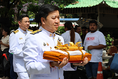 ในโอกาสอันเป็นสิริมงคลนี้ รองศาสตราจารย์ ดร.ประมุข อุณหเลขกะ อธิการบดีมหาวิทยาลัยเทคโนโลยีราชมงคลสุวรรณภูมิ ได้เป็นประธานในพิธีถวายผ้าพระกฐินพระราชทานอย่างเป็นทางการ โดยมีคณะผู้บริหาร บุคลากรของมหาวิทยาลัย รวมถึงแขกผู้มีเกียรติ และประชาชนที่มีจิตศรัทธา เข้าร่วมพิธีอย่างพร้อมเพรียง อาทิ พลเอกประวิตร วงษ์สุวรรณ นายเอกวิทย์ มีเพียร ผู้ว่าราชการจังหวัดปทุมธานี พลตำรวจโทคำรณวิทย์ ธูปกระจ่าง นายกองค์การบริหารส่วนจังหวัดปทุมธานี รวมถึงหัวหน้าส่วนราชการในจังหวัด