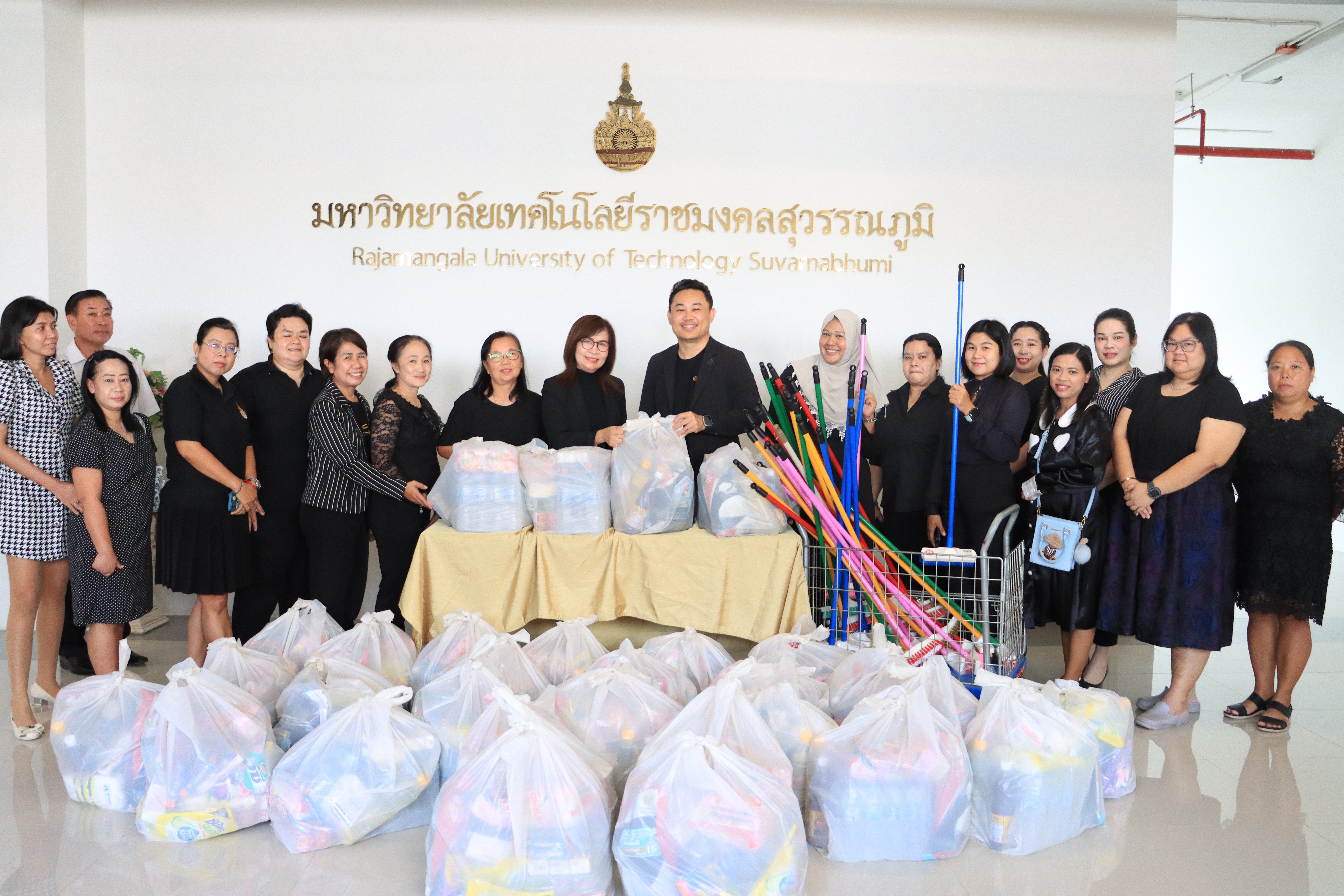 เมื่อวันอังคารที่ 12 พฤศจิกายน 2568 รองศาสตราจารย์ ดร.ประมุข อุณหเลขกะ อธิการบดีมหาวิทยาลัยเทคโนโลยีราชมงคลสุวรรณภูมิ มอบหมายให้ผู้ช่วยศาสตราจารย์ ดร.ภาสพิรุฬห์ วัชรศรีสำเริง รองอธิการบดี พร้อมด้วยนางฤทัยชนก โพธิ์งาม ผู้อำนวยการสำนักงานอธิการบดี เป็นผู้แทนมหาวิทยาลัย มอบถุงยังชีพเพื่อช่วยเหลือและสร้างขวัญกำลังใจให้แก่บุคลากรของมหาวิทยาลัยที่ได้รับผลกระทบจากอุทกภัยน้ำท่วมกว่า 30 คน