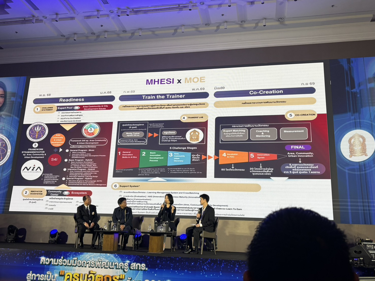 เมื่อวันจันทร์ที่ 8 ธันวาคม 2568 รองศาสตราจารย์ ดร.ประมุข อุณหเลขกะ อธิการบดีมหาวิทยาลัยเทคโนโลยีราชมงคลสุวรรณภูมิ มอบหมายให้ ผู้ช่วยศาสตราจารย์ ดร.วารุณี ศรีสงคราม ผู้อำนวยการสถาบันวิจัยและพัฒนา และ อาจารย์ ดร. ศิวัตม์ พลอินทร์ รองผู้อำนวยการสถาบันวิจัยและพัฒนา เข้าร่วมในพิธีลงนามบันทึกข้อตกลงความร่วมมือ (MOU) “โครงการพัฒนายกระดับครูกรมส่งเสริมการเรียนรู้ สู่ครูนวัตกร เพื่อการพัฒนาเศรษฐกิจฐานราก ด้วยการอุดมศึกษา วิทยาศาสตร์ วิจัยและนวัตกรรม (อววน.)” ระหว่างสำนักงานปลัดกระทรวงการอุดมศึกษา วิทยาศาสตร์ วิจัยและนวัตกรรม (อว.) และ กรมส่งเสริมการเรียนรู้ (สกร.) โดยมี ดร.สุเทพ แก่งสันเทียะ ปลัดกระทรวงศึกษาธิการ นางสาววราภรณ์ รุ่งตระการ รองปลัดกระทรวงการอุดมศึกษา วิทยาศาสตร์ วิจัยและนวัตกรรม ดร.เกศทิพย์ ศุภวานิช อธิบดีกรมส่งเสริมการเรียนรู้ พร้อมด้วยผู้บริหารระดับสูง คณะครูอาจารย์ และภาคีเครือข่าย เข้าร่วมงาน เพื่อขับเคลื่อนองค์ความรู้ด้านการอุดมศึกษา วิทยาศาสตร์ วิจัยและนวัตกรรม ไปสู่การสร้างประโยชน์ในเชิงพื้นที่อย่างเป็นระบบ พร้อมวางรากฐานการเรียนรู้ตลอดชีวิตแก่ประชาชนทุกกลุ่มวัย เพื่อสนับสนุนการเติบโตของเศรษฐกิจฐานรากอย่างยั่งยืน การศึกษาคือรากฐาน สร้างคนพร้อมรับโลกอนาคต ณ โรงแรมพูลแมน คิงเพาเวอร์ รางน้ำ กรุงเทพฯ