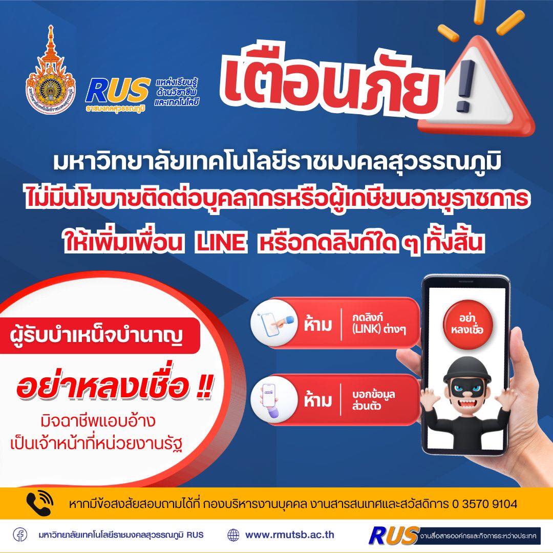 เตือนภัย🚨🚨 มหาวิทยาลัยเทคโนโลยีราชมงคลสุวรรณภูมิ ไม่มีนโยบายติดต่อบุคลากรหรือผู้เกษียนอายุราชการ