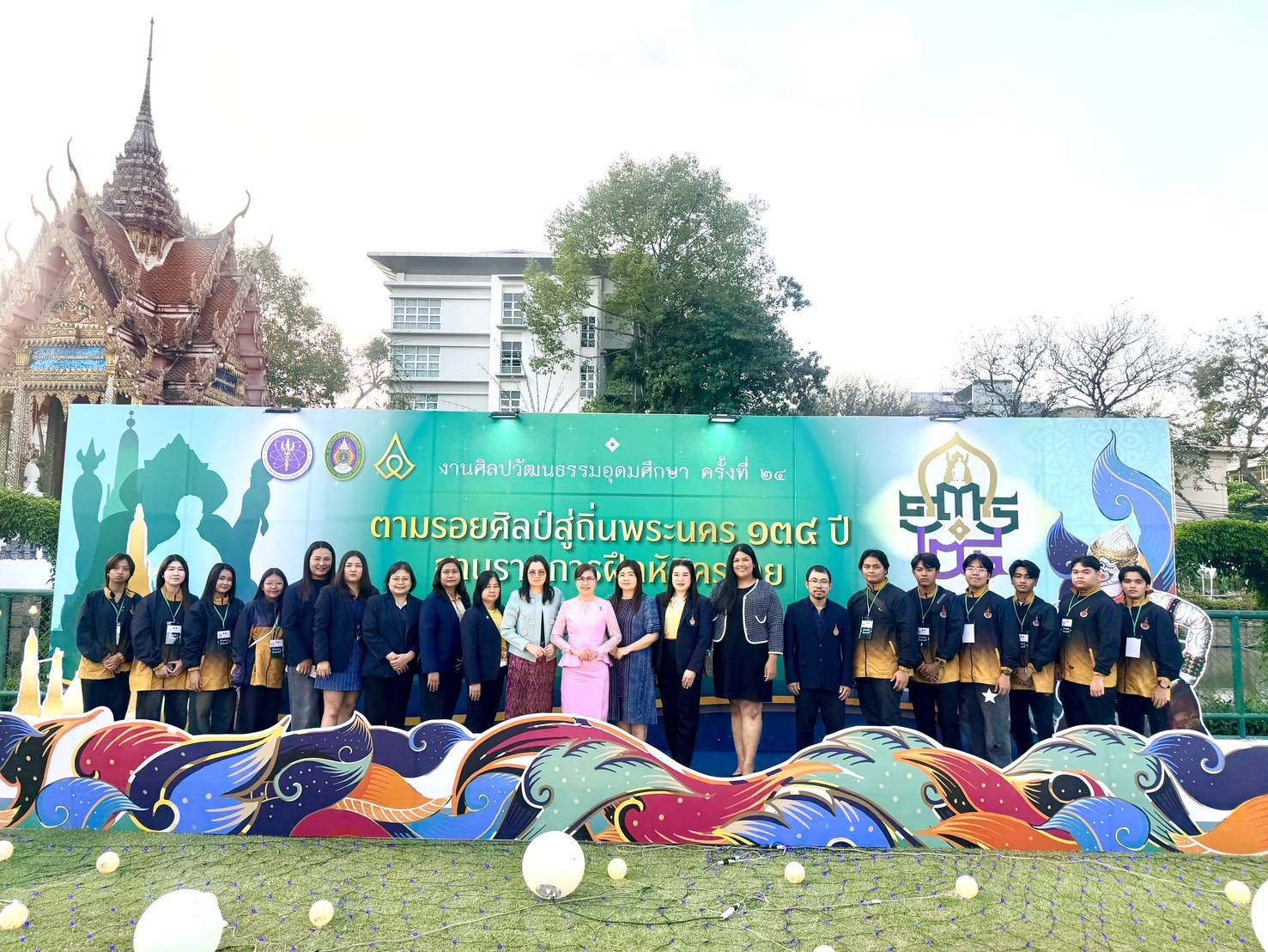 รองอธิการบดี พร้อมด้วยนางสาวอุศนา อนงค์เวช ผู้ช่วยอธิการบดี นางฤทัยชนก โพธิ์งาม ผู้อำนวยการกองพัฒนานักศึกษา คณาจารย์ บุคลากร และนักศึกษา เข้าร่วมพิธีเปิดงานศิลปวัฒนธรรมอุดมศึกษา ครั้งที่ 24 ภายใต้ชื่องาน “ตามรอยศิลป์สู่ถิ่นพระนคร 134 ปี ฐานรากการฝึกหัดครูไทย” การจัดงานครั้งนี้มีวัตถุประสงค์เพื่อเฉลิมฉลองวาระครบรอบ 134 ปี ของการก่อตั้งโรงเรียนฝึกหัดครูแห่งแรกของประเทศไทย ซึ่งถือเป็นจุดเริ่มต้นสำคัญของระบบการศึกษาไทย และเป็นรากฐานอันมั่นคงของสถาบันราชภัฏ ในฐานะสถาบันอุดมศึกษาเพื่อการพัฒนาท้องถิ่นอย่างยั่งยืน