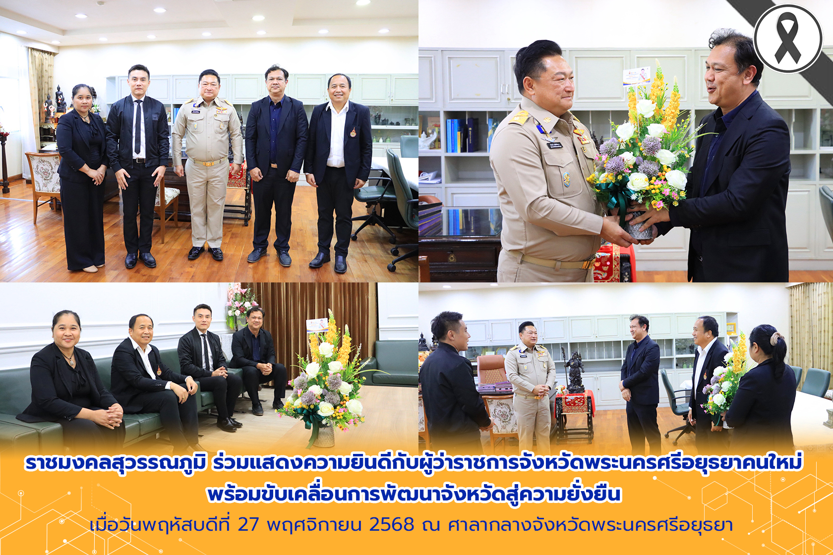 ราชมงคลสุวรรณภูมิร่วมแสดงความยินดีกับผู้ว่าราชการจังหวัดพระนครศรีอยุธยาคนใหม่ พร้อมขับเคลื่อนการพัฒนาจังหวัดสู่ความยั่งยืน | ครั้ง