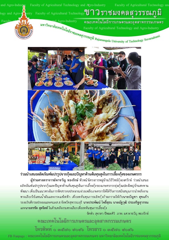 ร่วมนำเสนอผลิตภัณฑ์แปรรูปจากกุ้งและปัญหาด้านต้นทุนสูงในการเลี้ยงกุ้งของเกษตรกร
