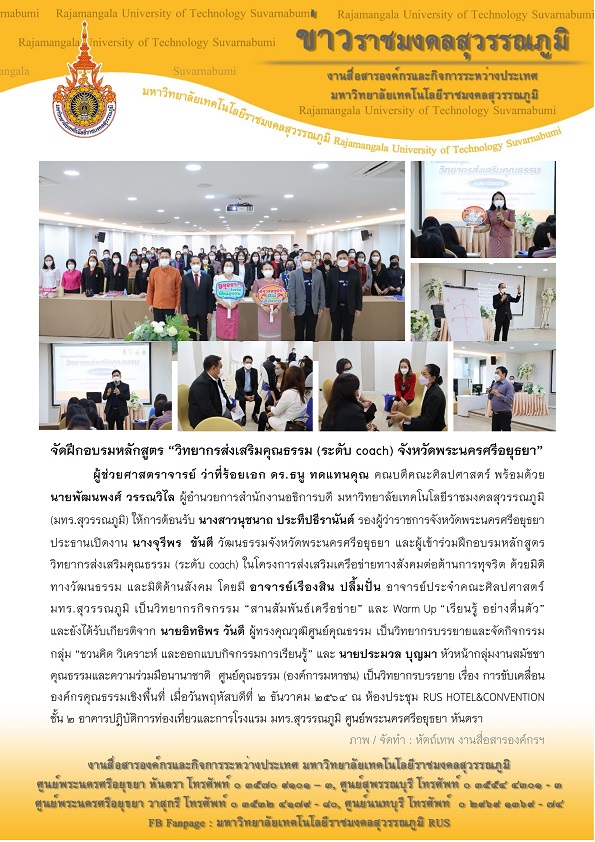 จัดฝึกอบรมหลักสูตร วิทยากรส่งเสริมคุณธรรม (ระดับ coach) จังหวัดพระนครศรีอยุธยา