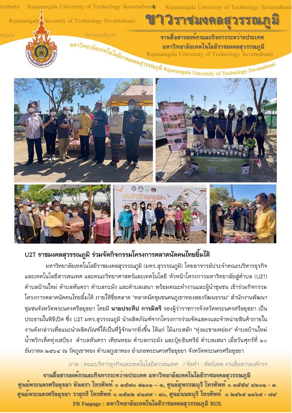 U2T ราชมงคลสุวรรณภูมิ ร่วมจัดกิจกรรมโครงการตลาดนัดคนไทยยิ้มได้