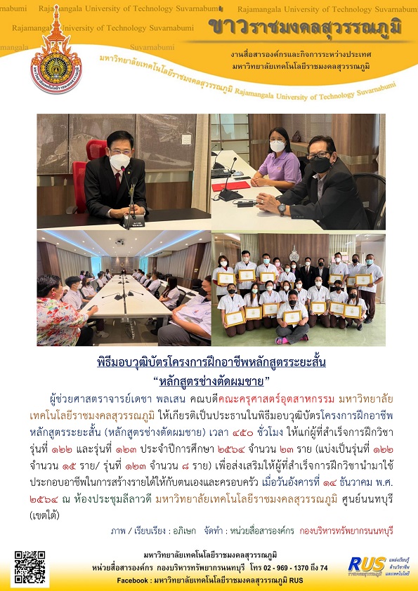 มอบประกาศนียบัตร หลักสูตรช่างตัดผมชาย