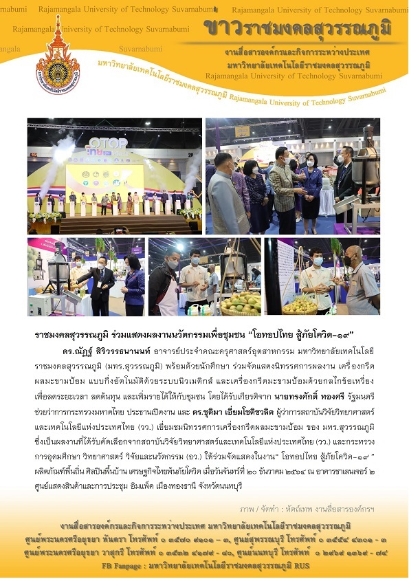 ร่วมแสดงผลงานนวัตกรรมเพื่อชุมชน “โอทอปไทย สู้ภัยโควิด-๑๙ ”
