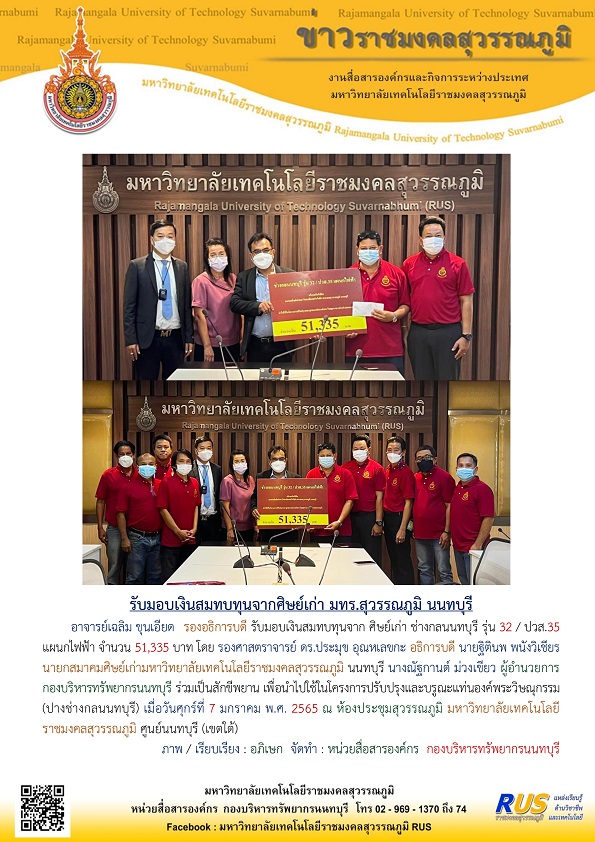 รับมอบเงินสมทบทุน จากศิษย์เก่า มทร.สุวรรณภูมิ นนทบุรี