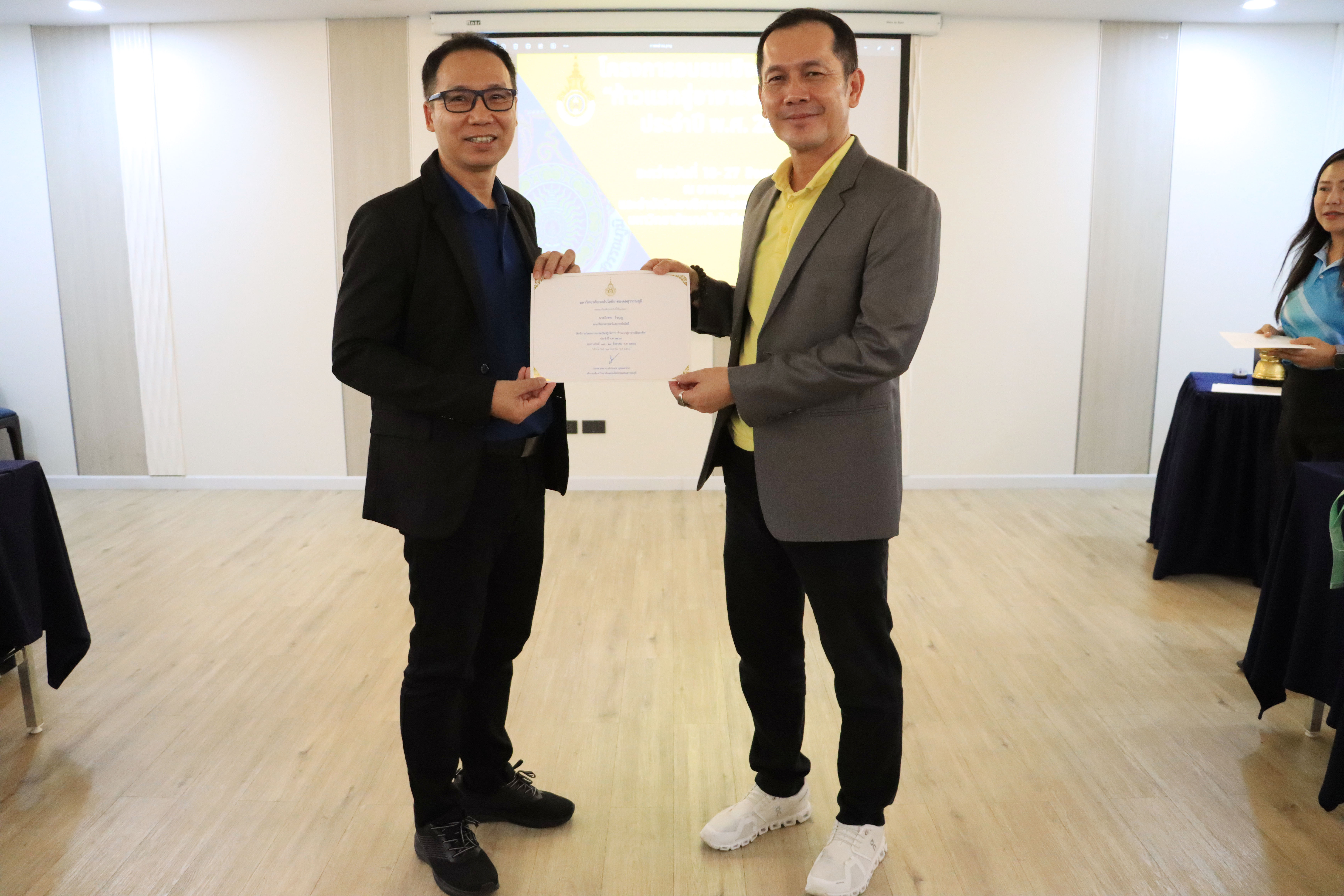 เมื่อวันพุธที่ 27 สิงหาคม 2568 รองศาสตราจารย์ ดร.ประมุข อุณหเลขกะ อธิการบดีมหาวิทยาลัย มอบหมายให้ ดร.กฤตย์ตนัย ธารารัตนสุวรรณ ผู้อำนวยการสำนักวิทยบริการและเทคโนโลยีสารสนเทศ กล่าวปิดการอบรมและมอบเกียรติบัตรแก่ผู้ผ่านการอบรม เชิงปฏิบัติการ “ก้าวแรกสู่อาจารย์มืออาชีพ” ประจำปี พ.ศ. 2568 จัดขึ้นเพื่อเตรียมความพร้อมและพัฒนาศักยภาพบุคลากรสายวิชาการให้ก้าวสู่การเป็นครูมืออาชีพที่มีคุณภาพ มีจรรยาบรรณ และสามารถตอบโจทย์การศึกษาในยุคปัจจุบันได้อย่างมีประสิทธิภาพ การอบรมครั้งนี้มุ่งเน้นการเสริมสร้างความรู้และทักษะด้านวิชาชีพครูในหลายมิติ อาทิ หลักคุณธรรมจรรยาบรรณวิชาชีพ การออกแบบหลักสูตร การจัดการเรียนรู้ จิตวิทยาพัฒนาการและการแนะแนว การใช้สื่อและเทคโนโลยีในชั้นเรียน การวัดและประเมินผลการเรียนรู้ตามกรอบ TPCK แนวคิด STEM การดำเนินการแบบ PLC ทักษะการนิเทศการสอนงาน ตลอดจนหลักสูตรวิชาชีพครูตามเกณฑ์มาตรฐานของกระทรวงศึกษาธิการ รวมชั่วโมงการอบรมไม่น้อยกว่า 60 ชั่วโมงโดยผู้มีผู้เข้าอบรมที่ผ่านการประเมินความรู้ในศาสตร์วิชาชีพครู และได้รับเกียรติบัตร กว่า 20 คน ท่ามกลางบรรยากาศอบอุ่นและเปี่ยมด้วยความภาคภูมิใจ