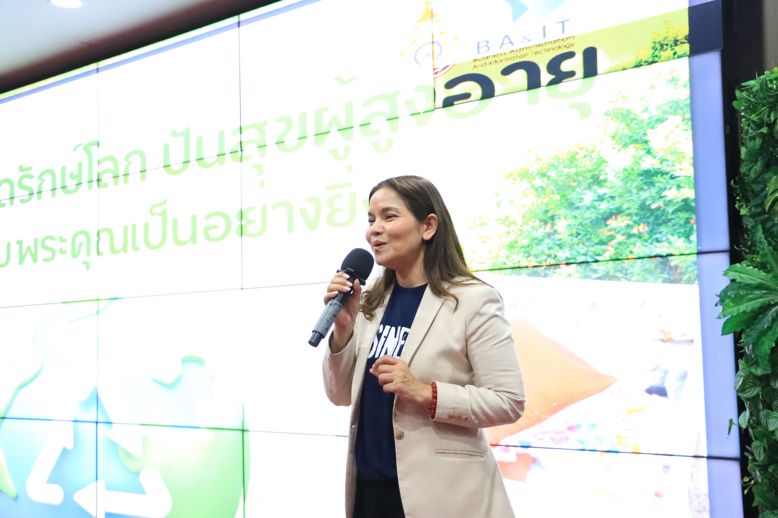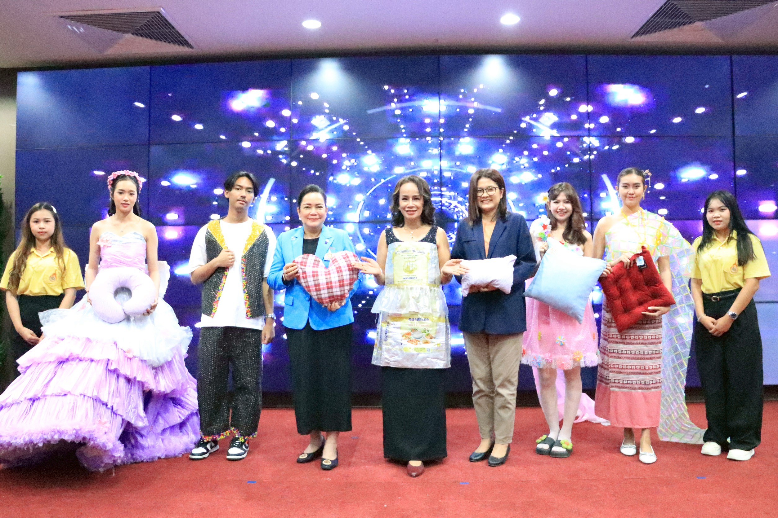 เมื่อวันพุธที่ 15 ตุลาคม 2568 อาจารย์อโณทัย ทิพเนตร รองคณบดีคณะบริหารธุรกิจและเทคโนโลยีสารสนเทศ มหาวิทยาลัยเทคโนโลยีราชมงคลสุวรรณภูมิ เป็นประธานเปิดกิจกรรม “หมอนหลอดสานสุข สร้างรอยยิ้ม” โดยโครงการดังกล่าวมีผู้ช่วยศาสตราจารย์ ดร.นวพร รัตนบุรี รองคณบดีคณะบริหารธุรกิจและเทคโนโลยีสารสนเทศ พร้อมด้วยคณาจารย์ และนักศึกษา ร่วมจัดกิจกรรมดังกล่าว เพื่อรณรงค์ให้เกิดความตระหนักรู้ในด้านสิ่งแวดล้อม ส่งเสริมความคิดสร้างสรรค์และจิตอาสา ตลอดจนปลูกฝังแนวคิดในการแบ่งปันและพัฒนาจิตสำนึกในการสร้างสรรค์สิ่งดี ๆ เพื่อสังคม ภายในงานมีกิจกรรมที่น่าสนใจหลากหลาย อาทิ การเดินแบบชุดรีไซเคิล จากวัสดุเหลือใช้ที่ออกแบบอย่างสร้างสรรค์โดยนักศึกษา การจัดบูทนิทรรศการผลงานจากวัสดุเหลือใช้ การนำเสนอผลงาน “หมอนหลอด” ซึ่งเป็นการนำหลอดพลาสติกที่ใช้แล้วมารีไซเคิลเป็นหมอน เพื่อมอบให้กับผู้สูงอายุในชุมชน การสาธิตวิธีทำหมอนหลอด การส่งมอบหมอนหลอดให้กับหน่วยงานเครือข่าย เพื่อนำไปส่งต่อให้กับผู้สูงอายุในพื้นที่ต่าง ๆ ณ ห้องประชุมสมเด็จพระบรมไตรโลกนาถ ชั้น 3 อาคารบูรณมงคล มหาวิทยาลัยเทคโนโลยีราชมงคลสุวรรณภูมิ ศูนย์พระนครศรีอยุธยา หันตรา