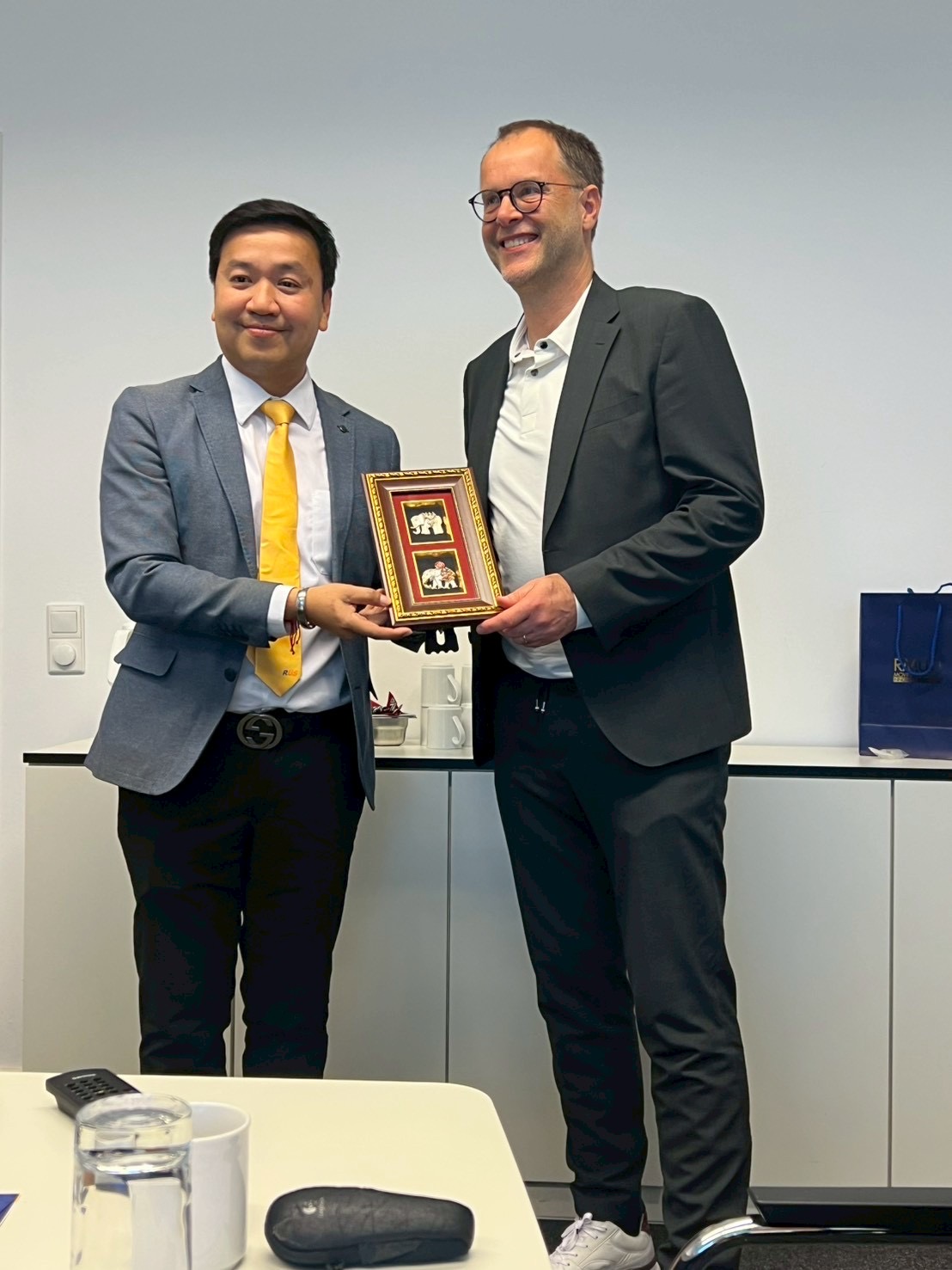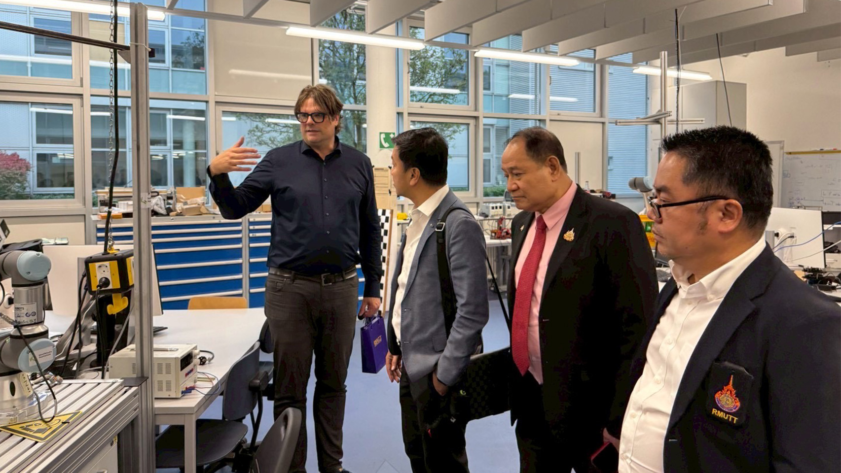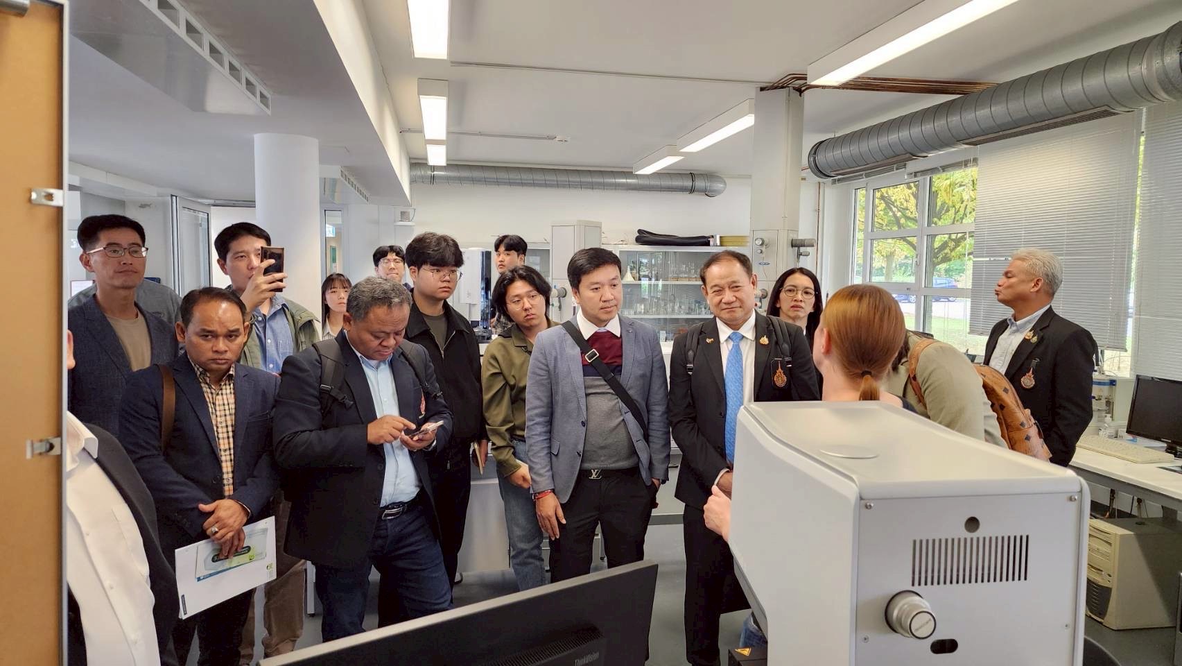 เมื่อวันที่ 6 – 13 ตุลาคม 2568 ณ สหพันธ์สาธารณรัฐเยอรมนี รองศาสตราจารย์ ดร.ประมุข อุณหเลขกะ อธิการบดี พร้อมด้วยผู้บริหาร และคณบดีคณะวิศวกรรมศาสตร์และสถาปัตยกรรมศาสตร์ มหาวิทยาลัยเทคโนโลยีราชมงคลสุวรรณภูมิ เข้าร่วมโครงการ Workshop ด้านอุตสาหกรรมพลาสติกและพบผู้ประกอบการ ในงาน K 2025 การแสดงผลิตภัณฑ์ที่รวบรวมและนำเสนอนวัตกรรมและเทคโนโลยีแนวโน้มล่าสุดในอุตสาหกรรมพลาสติกและยางพารา อันดับ 1 ของโลก ซึ่งจัดขึ้น ณ เมือง Düsseldorf การร่วมงานครั้งนี้ อธิการบดีและคณะได้เข้าแลกเปลี่ยนความคิดเห็นกับผู้ประกอบการและธุรกิจสตาร์ทอัพจากทั่วโลก เพื่อวางแนวทางการสร้างความร่วมมือด้านการศึกษา นอกจากนี้ ยังได้เข้าเยี่ยมชมอุตสาหกรรมด้านพลังงานไฮโดรเจนและนวัตกรรมยานยนต์ไฟฟ้า พร้อมเข้าหารือแนวทางการแลกเปลี่ยนนักศึกษาในระบบการศึกษาที่ผสมผสานระหว่างการเรียนในห้องเรียนกับการทำงานจริงในสถานประกอบการทั้งระดับปริญญาตรีและบัณฑิตศึกษา ร่วมกับอธิการบดีและคณะผู้บริหารของมหาวิทยาลัย Westfalliche Hochschule การเยี่ยมชมและรับฟังระบบการเรียนการสอนและการทำวิจัยที่ได้รับความร่วมมือจากภาคอุตสาหกรรมทั้งในและภายนอกประเทศ ที่ IKV-Institute for Plastic Processing in Industry and Craft ซึ่งก่อตั้งมาตั้งแต่ปี 1950 ณ มหาวิทยาลัย RWTH Aachen อีกทั้งยังได้เข้าหารือกับ Priv.-Doz. Dr. habil. Franz Dunkel. Prof. (Assoc.) ผู้ประสานงาน Meister Program ของมหาวิทยาลัย เพื่อวางแนวทางการสร้างความร่วมมือด้านวิจัยและบริการวิชาการของบุคลากร มหาวิทยาลัยเทคโนโลยีราชมงคลสุวรรณภูมิ