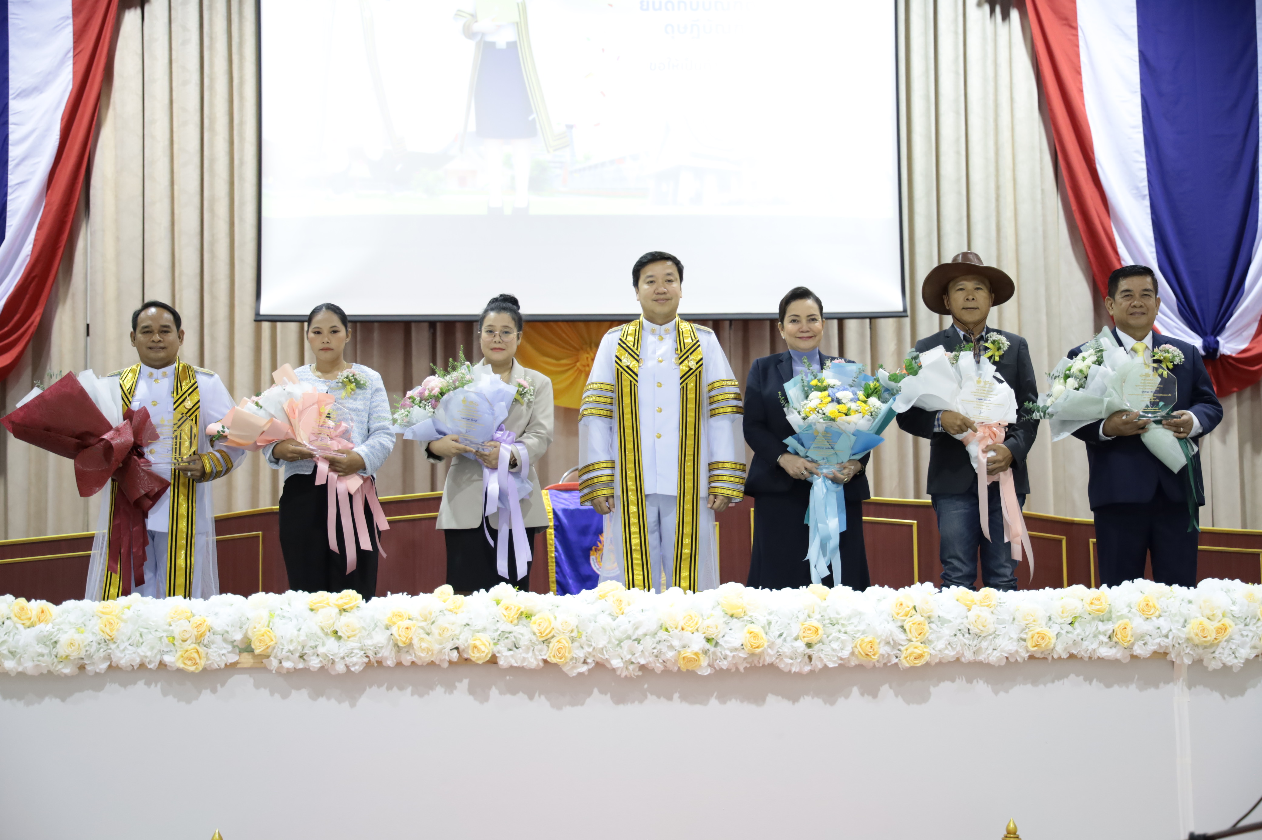 เมื่อวันอาทิตย์ที่ 19 ตุลาคม 2568 มหาวิทยาลัยเทคโนโลยีราชมงคลสุวรรณภูมิ จัดพิธีฝึกซ้อมใหญ่พิธีพระราชทานปริญญาบัตร ประจำปีการศึกษา 2567 โดยรองศาสตราจารย์ ดร.ประมุข อุณหเลขกะ อธิการบดีมหาวิทยาลัยเทคโนโลยีราชมงคลสุวรรณภูมิ กล่าวต้อนรับและแสดงความยินดีแก่มหาบัณฑิต และบัณฑิตทุกท่าน พร้อมมอบโล่ประกาศเกียรติคุณให้แก่ศิษย์เก่าดีเด่น RUS ALUMNI AWARD ประจำปีการศึกษา 2568 จำนวน 6 ท่านดังนี้ 1. คุณเฉลิม บุญประเชิญ ประธานคณะผู้บริหารฝ่ายปฏิบัติการ บริษัทเจริญโภคภัณฑ์โปรดิ้วส์ จำกัด เครือเจริญโภคภัณฑ์ ศิษย์เก่าดีเด่นคณะเทคโนโลยีการเกษตรและอุตสาหกรรมเกษตร คุณสุทัศน์ วงษ์วานิช นายกองค์การบริหารส่วนตำบลสะพานหิน อำเภอหนองมะโมง จังหวัดชัยนาท ศิษย์เก่าดีเด่นคณะเทคโนโลยีการเกษตรและอุตสาหกรรมเกษตร คุณมนต์ธนภรณ์ ประภัสสรพิทยา ผู้บริหารกิจการหอพักและอพาร์ทเม้นท์ในเครือ “ประสิทธิ์อพาร์ทเม้นท์” ศิษย์เก่าคณะบริหารธุรกิจและเทคโนโลยีสารสนเทศ คุณรวมพร เชี่ยวบัญชี ประธานกรรมการบริหารบริษัท อินฟินิตี้ ออล ทู ยู จำกัด ศิษย์เก่าคณะวิทยาศาสตร์และเทคโนโลยี ผู้แทนคุณกษาน ทองสงฆ์ กรรมการผู้จัดการบริษัท ทีเทพ เอ็นจิเนียริ่ง แอนด์ เคมีคอล จำกัด ศิษย์เก่าคณะวิศวกรรมศาสตร์และสถาปัตยกรรมศาสตร์ และผู้แทนคุณกัมปนาท อยู่กำเนิด ศิษย์เก่าคณะศิลปศาสตร์ ทั้งนี้ในพิธีฝึกซ้อมมีอาจารย์เรืองสิน ปลื้มปั่น อาจารย์ประจำคณะศิลปศาสตร์ เป็นผู้ชี้แจงขั้นตอนเเนวปฏิบัติ เเละได้รับเกียรติจากศาสตราจารย์กิตติคุณ ดร.สุจิระ ขอจิตต์เมตต์ ผู้ทรงวุฒิประสานงานสำนักพระราชวัง ร่วมให้คำเเนะนำกับบัณฑิต เพื่อเตรียมความพร้อมให้กับบัณฑิตในพิธีพระราชทานปริญญาบัตร ในวันพุธที่ 22 ตุลาคม 2568 ณ หอประชุมสมเด็จพระเจ้าตากสินมหาราช มหาวิทยาลัยเทคโนโลยีราชมงคลสุวรรณภูมิ ศูนย์พระนครศรีอยุธยา