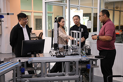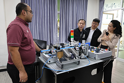 เมื่อวันอังคารที่ 21 ตุลาคม พ.ศ. 2568 ผู้ช่วยศาสตราจารย์พัชระ กัญจนกาญจน์ คณบดีคณะวิศวกรรมศาสตร์และสถาปัตยกรรมศาสตร์ มหาวิทยาลัยเทคโนโลยีราชมงคลสุวรรณภูมิ กล่าวต้อนรับ Mr. LV Xuesong the head of the “Industrial Robot Technology” major Hubei Three Gorges Polytechnic Mr. LI Yi the teaching assistant จากสาธารณรัฐประชาชนจีน และ นางสาวศุภารัตน์ คงราศรี ผู้จัดการโครงการ ประจำประเทศไทย บริษัท Beijing Huatec Information Technology จำกัด พร้อมเปิดกิจกรรมส่งเสริมความร่วมมือทางวิชาการ ประชุมหารือด้านการเรียนการสอนและการวิจัยในสาขาแมคคาทรอนิกส์ และเยี่ยมชมห้องปฏิบัติการสาขาวิชาเมคคาทรอนิกส์ และห้องปฏิบัติการระบบอัตโนมัติและหุ่นยนต์