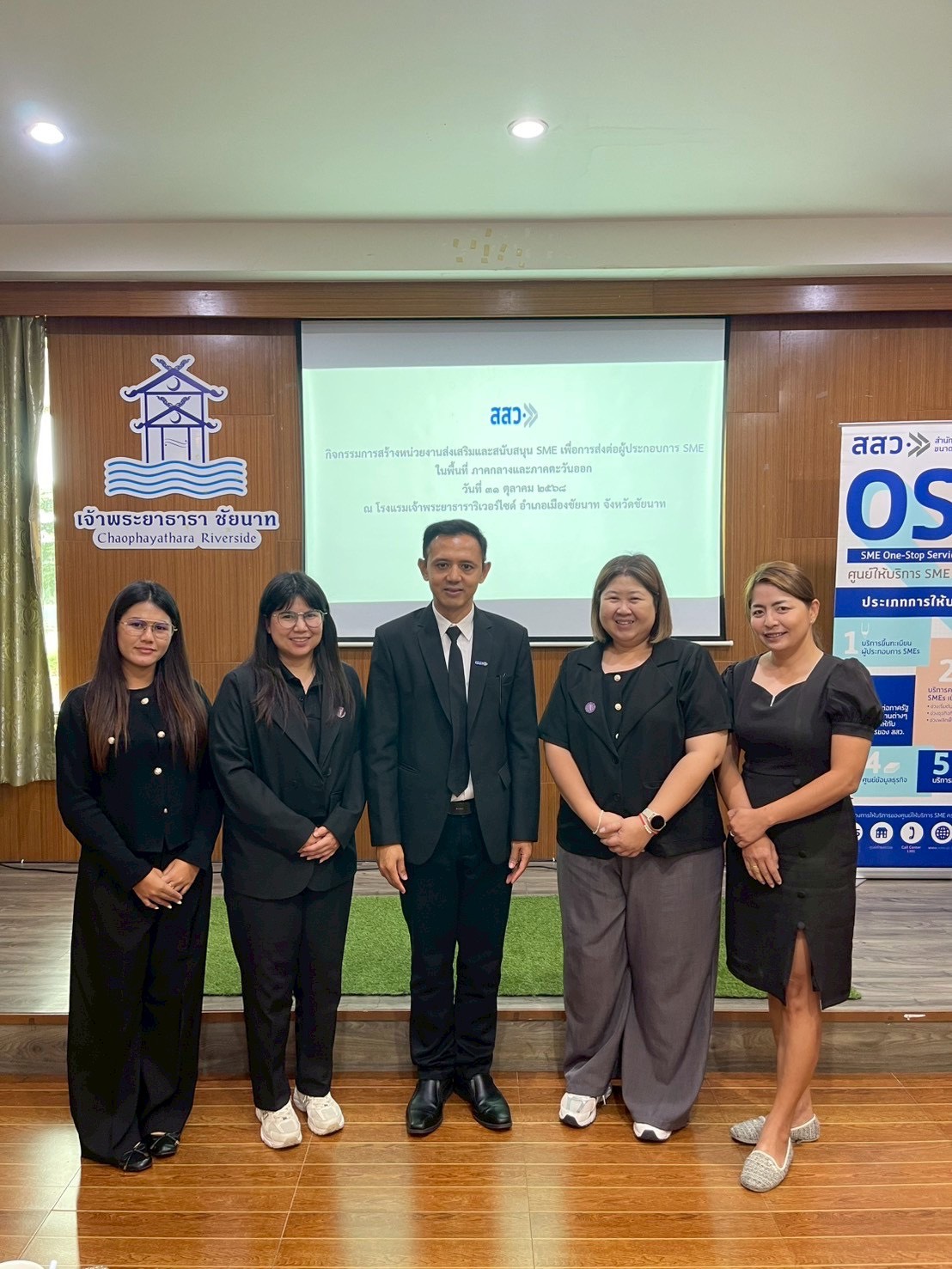 เมื่อวันศุกร์ที่ 31 ตุลาคม 2568 งานบริการวิชาการและถ่ายทอดเทคโนโลยี สถาบันวิจัยและพัฒนา มหาวิทยาลัยเทคโนโลยีราชมงคลสุวรรณภูมิ นำโดย นางสาวพนิดา เฟื่องขจร หัวหน้างานบริการวิชาการและถ่ายทอดเทคโนโลยี พร้อมด้วยทีมงานเข้าร่วมกิจกรรม “การสร้างหน่วยงานส่งเสริมและสนับสนุน SME เพื่อการส่งต่อผู้ประกอบการในพื้นที่”ณ โรงแรมเจ้าพระยาธาราริเวอร์ไซต์ อำเภอเมืองชัยนาท จังหวัดชัยนาท โดยมี นายวิษณุ วิทยวราวัฒน์ รองผู้ว่าราชการจังหวัดชัยนาท เป็นประธานเปิดงาน พร้อมด้วยหน่วยงานภาครัฐและเอกชนในจังหวัดชัยนาทกว่า 20 หน่วยงาน ร่วมบูรณาการความร่วมมือเพื่อ ส่งเสริม พัฒนา และสนับสนุนผู้ประกอบการ SME ให้เข้าถึงบริการและสิทธิประโยชน์ของภาครัฐอย่างทั่วถึง มุ่งสร้างระบบนิเวศธุรกิจที่เข้มแข็งและยั่งยืนในพื้นที่จังหวัดชัยนาท