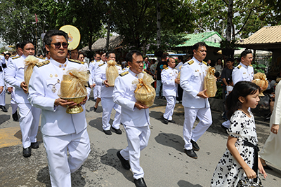 ในโอกาสอันเป็นสิริมงคลนี้ รองศาสตราจารย์ ดร.ประมุข อุณหเลขกะ อธิการบดีมหาวิทยาลัยเทคโนโลยีราชมงคลสุวรรณภูมิ ได้เป็นประธานในพิธีถวายผ้าพระกฐินพระราชทานอย่างเป็นทางการ โดยมีคณะผู้บริหาร บุคลากรของมหาวิทยาลัย รวมถึงแขกผู้มีเกียรติ และประชาชนที่มีจิตศรัทธา เข้าร่วมพิธีอย่างพร้อมเพรียง อาทิ พลเอกประวิตร วงษ์สุวรรณ นายเอกวิทย์ มีเพียร ผู้ว่าราชการจังหวัดปทุมธานี พลตำรวจโทคำรณวิทย์ ธูปกระจ่าง นายกองค์การบริหารส่วนจังหวัดปทุมธานี รวมถึงหัวหน้าส่วนราชการในจังหวัด