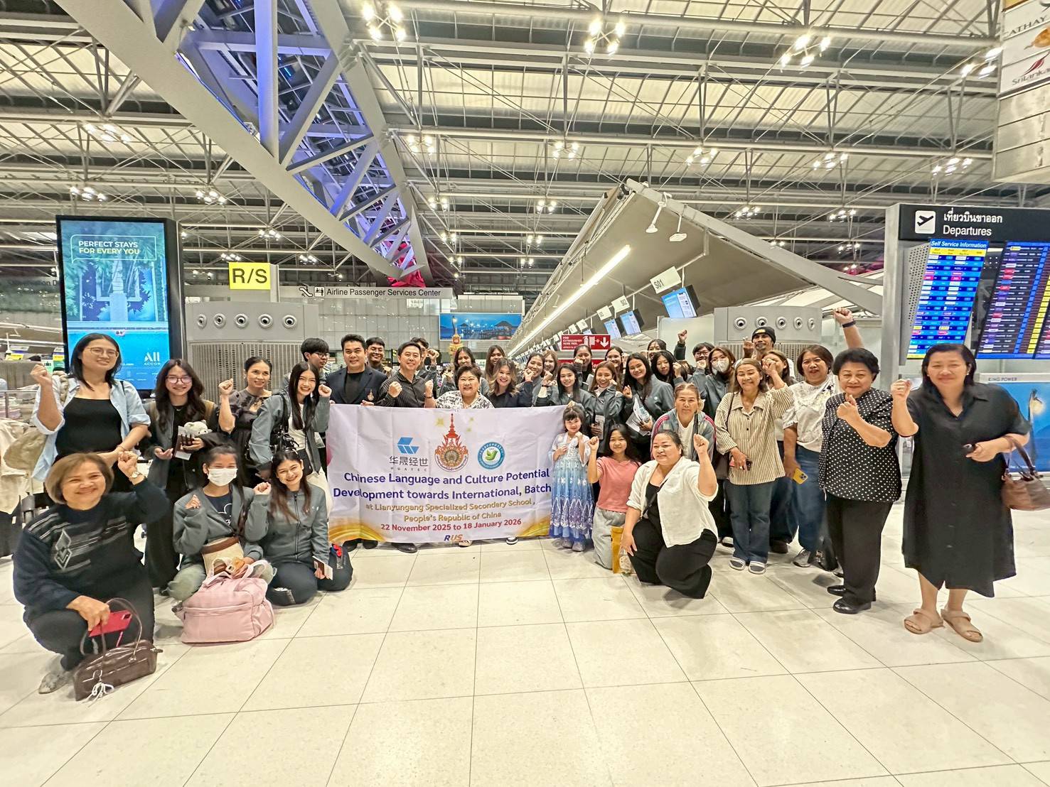 ในวันเดินทางวันเสาร์ที่ 22 พฤศจิกายน 2568 อาจารย์วนิดา วงศ์บรรณาคม ผู้ช่วยอธิการบดี ให้เกียรติมาส่งและให้กำลังใจนักศึกษาที่ท่าอากาศยานสุวรรณภูมิ ก่อนออกเดินทางสู่ประเทศจีน โดยมี อาจารย์วิมลวรรณ เปียยก อาจารย์ประจำสาขาภาษาจีน คณะศิลปศาสตร์ รับหน้าที่ควบคุมดูแลนักศึกษา จำนวน 20 คน ตลอดระยะเวลาโครงการ ซึ่งโครงการนี้เกิดจากการหารือร่วมกันภายใต้ Jingshi Institute Project and Operation Service Commission ตามมติที่ประชุมเมื่อวันที่ 11 กันยายน 2568 ณ ห้องประชุมพระพิรุณ อาคารเทคโนโลยีสารสนเทศ ศูนย์พระนครศรีอยุธยา หันตรา โดยมหาวิทยาลัยมอบหมายให้งานสื่อสารองค์กรและกิจการระหว่างประเทศร่วมกับคณะศิลปศาสตร์ ดำเนินโครงการแลกเปลี่ยนนักศึกษา (International Exchange) เพื่อเปิดโอกาสให้นักศึกษาได้เรียนรู้ภาษาและวัฒนธรรมจีนผ่านหลักสูตรระยะสั้น 3 เดือนอย่างเข้มข้น
