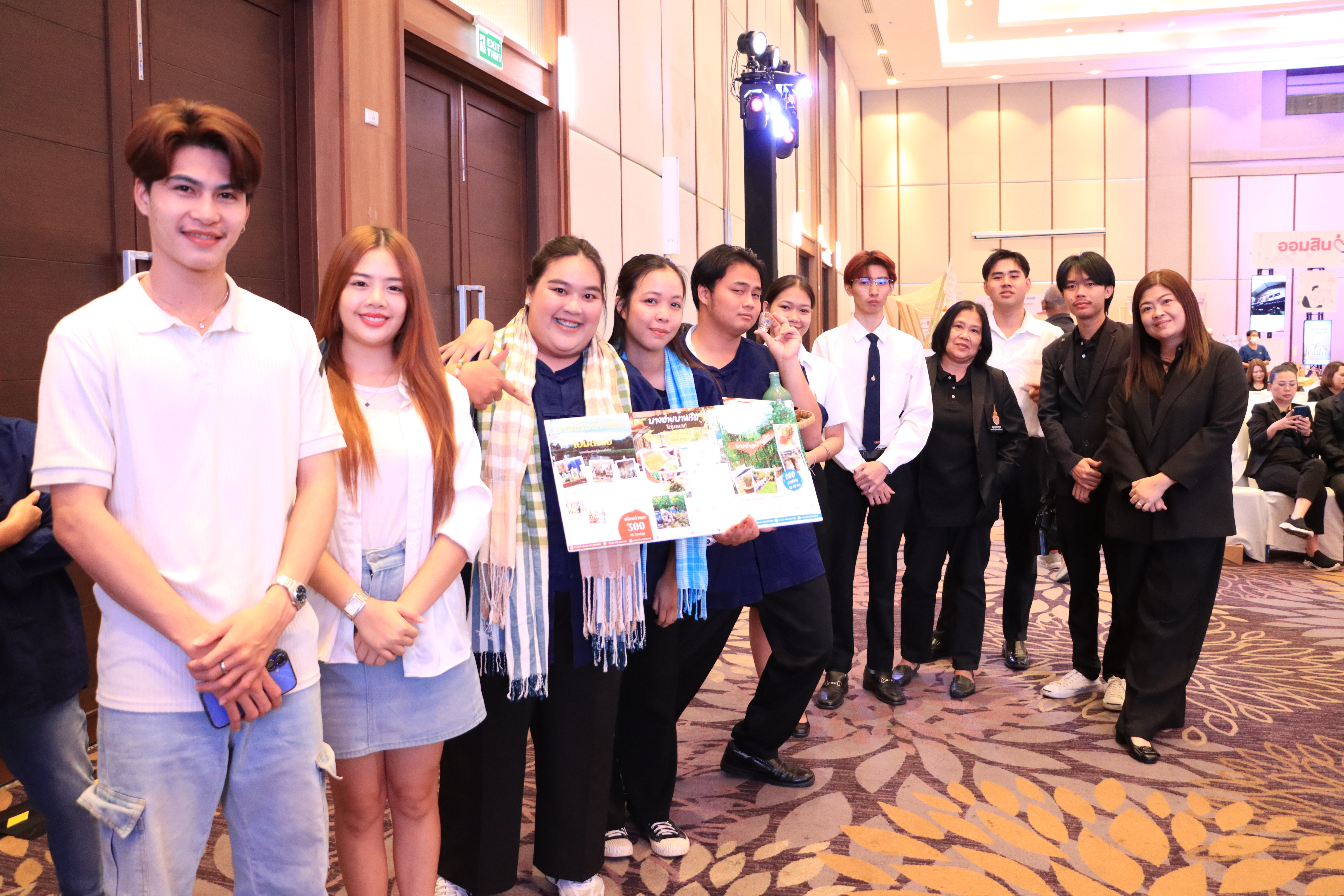 เมื่อวันอังคารที่ 25 พฤศจิกายน 2568 ดร.ศิวัตม์ พลอินทร์ รองผู้อำนวยการสถาบันวิจัยและพัฒนา มหาวิทยาลัยเทคโนโลยีราชมงคลสุวรรณภูมิ นำนักศึกษาเข้าร่วมประกวดผลงานโครงการ “ออมสินยุวพัฒน์รักษ์ถิ่น” ระดับประเทศ ประจำปี 2568 จัดขึ้น ณ โรงแรมทีเค พาเลซ แอนด์ คอนเวนชั่น แบงคอก กรุงเทพมหานคร โดยมีผู้ช่วยศาสตราจารย์พาขวัญ ทองรักษ์ รองคณบดี อาจารย์วรรภา วงศ์แสงธรรม คณะเทคโนโลยีการเกษตรและอุตสาหกรรมเกษตร รองศาสตราจารย์ ดร.ศิริมา แก้วเกิด อาจารย์สุวรรณี หงส์วิจิตร คณะบริหารธุรกิจและเทคโนโลยีสารสนเทศ ที่ปรึกษาทีม “อยู่ดี Stay Wett Team” และนักศึกษาที่ร่วมพัฒนาแนวคิดบริการโฮมสเตย์และท่องเที่ยวชุมชน “บ้านเต่าเล่า”