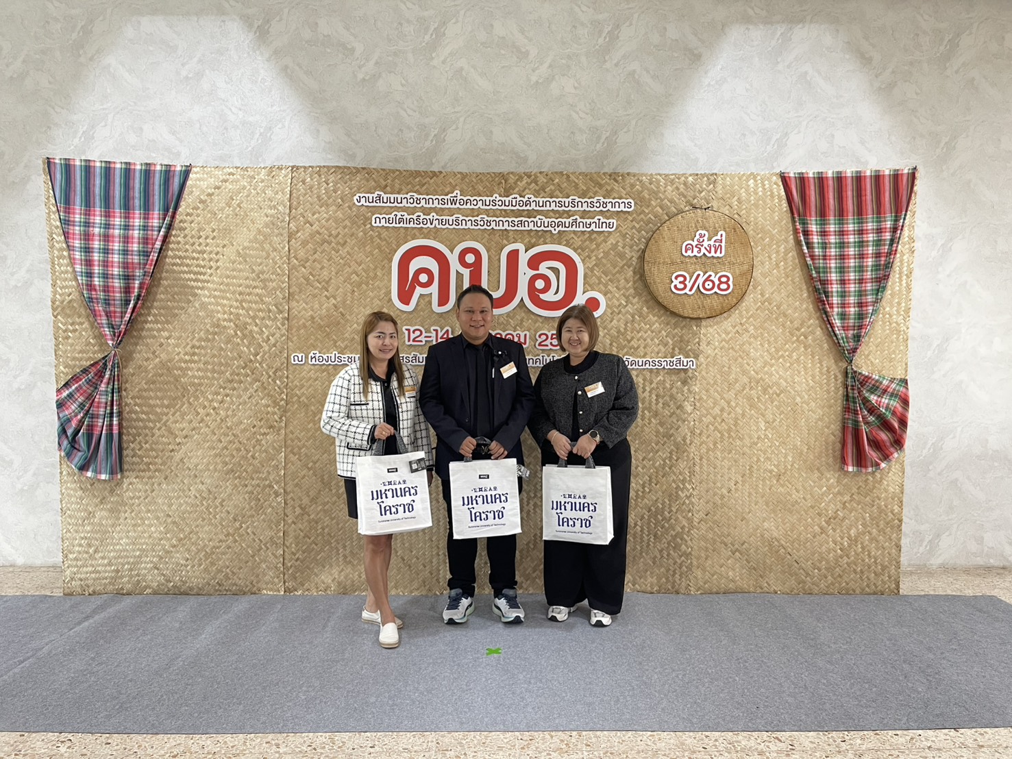 งานบริการวิชาการและถ่ายทอดเทคโนโลยี สถาบันวิจัย มหาวิทยาลัยเทคโนโลยีราชมงคลสุวรรณภูมิ นำโดย อาจารย์ธง คำเกิด รองผู้อำนวยการสถาบันวิจัยและพัฒนา พร้อมด้วยบุคลากร เข้าร่วมประชุมสัมมนาวิชาการเพื่อสร้างความร่วมมือด้านบริการวิชาการ ภายใต้ เครือข่ายบริการวิชาการ สถาบันอุดมศึกษาไทย (คบอ.) ครั้งที่ 3/2568 โดยมหาวิทยาลัยเทคโนโลยีสุรนารี มหาวิทยาลัยเทคโนโลยีราชมงคลอีสาน และมหาวิทยาลัยราชภัฏนครราชสีมา เป็นเจ้าภาพในการจัดงานครั้งนี้