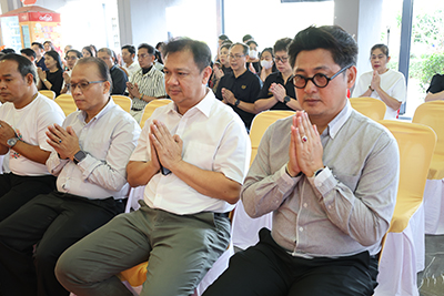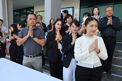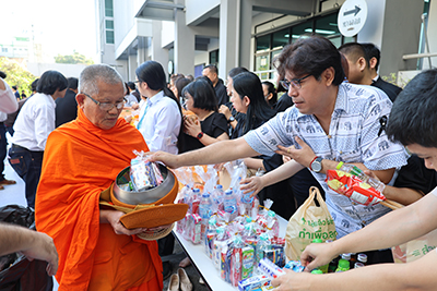 เมื่อวันศุกร์ที่ 26 ธันวาคม พ.ศ. 2568 รองศาสตราจารย์ ดร.ประมุข อุณหเลขกะ อธิการบดีมหาวิทยาลัยเทคโนโลยีราชมงคลสุวรรณภูมิ มอบหมายให้ ผู้ช่วยศาสตราจารย์เฉลิม ขุนเอียด รองอธิการบดีประจำศูนย์พื้นที่นนทบุรี เป็นประธานในกิจกรรม “ส่งท้ายปีเก่า ต้อนรับปีใหม่ 2569” ณ มหาวิทยาลัยเทคโนโลยีราชมงคลสุวรรณภูมิ ศูนย์นนทบุรี (เขตใต้) กิจกรรมครั้งนี้มีคณะผู้บริหาร คณาจารย์ เจ้าหน้าที่ นักศึกษา รวมถึงคณาจารย์ที่เกษียณอายุราชการ และผู้แทนสมาคมผู้ปกครองและคณาจารย์มหาวิทยาลัยเทคโนโลยีราชมงคลสุวรรณภูมิ ศูนย์นนทบุรี เข้าร่วมอย่างพร้อมเพรียง บรรยากาศเต็มไปด้วยความอบอุ่นและรอยยิ้ม ภายในงานมีการถวายภัตตาหารเช้าแด่พระภิกษุสงฆ์ พร้อมประกอบพิธีเจริญพระพุทธมนต์ และทำบุญตักบาตรข้าวสารอาหารแห้ง โดยนิมนต์พระภิกษุสงฆ์จากวัดท้ายเมือง จำนวน 7 รูป และวัดกลางบางซื่อ จำนวน 2 รูป จังหวัดนนทบุรี เพื่อความเป็นสิริมงคลแก่บุคลากรและนักศึกษาของมหาวิทยาลัย นอกจากการทำบุญแล้ว ผู้เข้าร่วมกิจกรรมยังได้ร่วมรับประทานอาหารกลางวันร่วมกัน สร้างบรรยากาศแห่งความรัก ความสามัคคี และความสัมพันธ์อันแน่นแฟ้นภายในองค์กร กิจกรรมนี้ไม่เพียงแต่เป็นการสร้างบุญกุศล หากยังเป็นเวทีแห่งการเชื่อมโยงความสัมพันธ์ระหว่างบุคลากร นักศึกษา และผู้มีส่วนเกี่ยวข้องกับมหาวิทยาลัยให้แน่นแฟ้นยิ่งขึ้น