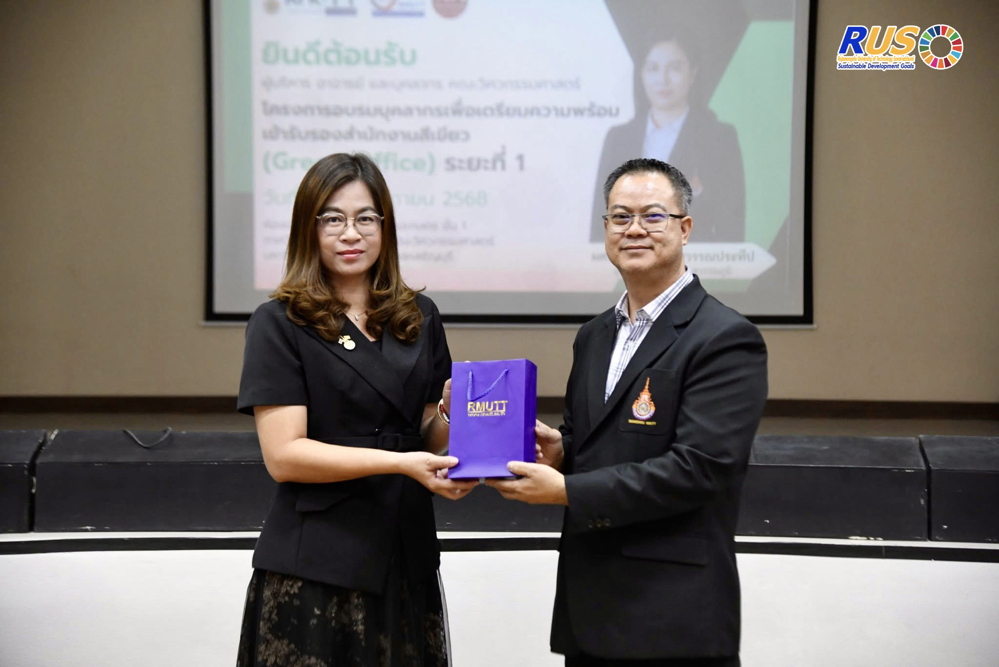 มหาวิทยาลัยเทคโนโลยีราชมงคลสุวรรณภูมิ เดินหน้าบทบาทพี่เลี้ยงด้านสิ่งแวดล้อม โดยมี ผู้ช่วยศาสตราจารย์ศศิกานต์ สุวรรณประทีป ผู้ช่วยอธิการบดี พร้อมทีมงานตรวจประเมิน ลงพื้นที่เป็นวิทยากรฝึกอบรมเชิงปฏิบัติการยกระดับมาตรฐาน “สำนักงานสีเขียว” (Green Office) ให้แก่คณะวิศวกรรมศาสตร์ มหาวิทยาลัยเทคโนโลยีราชมงคลธัญบุรี เพื่อเตรียมความพร้อมเข้ารับการรับรองอย่างเต็มรูปแบบ