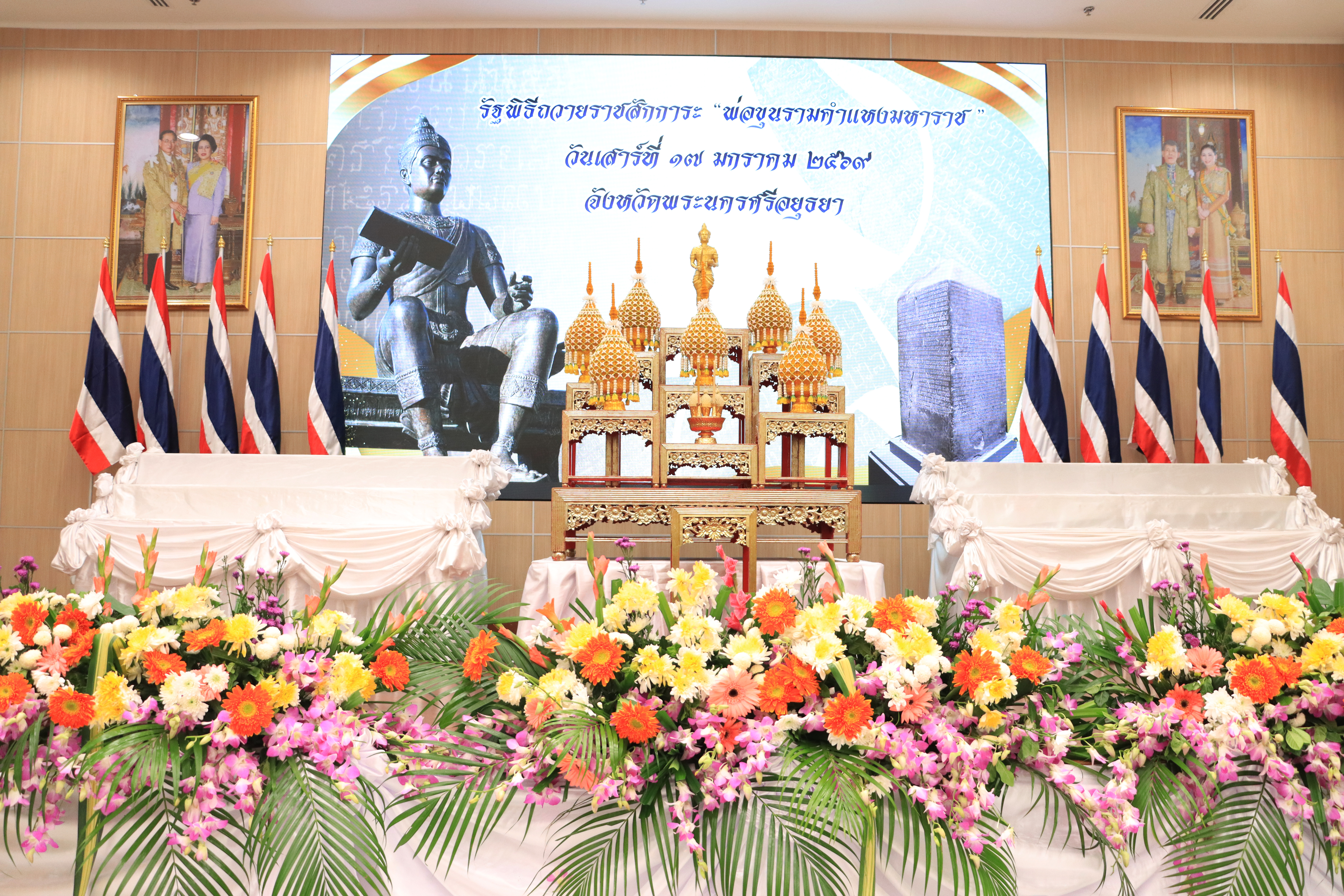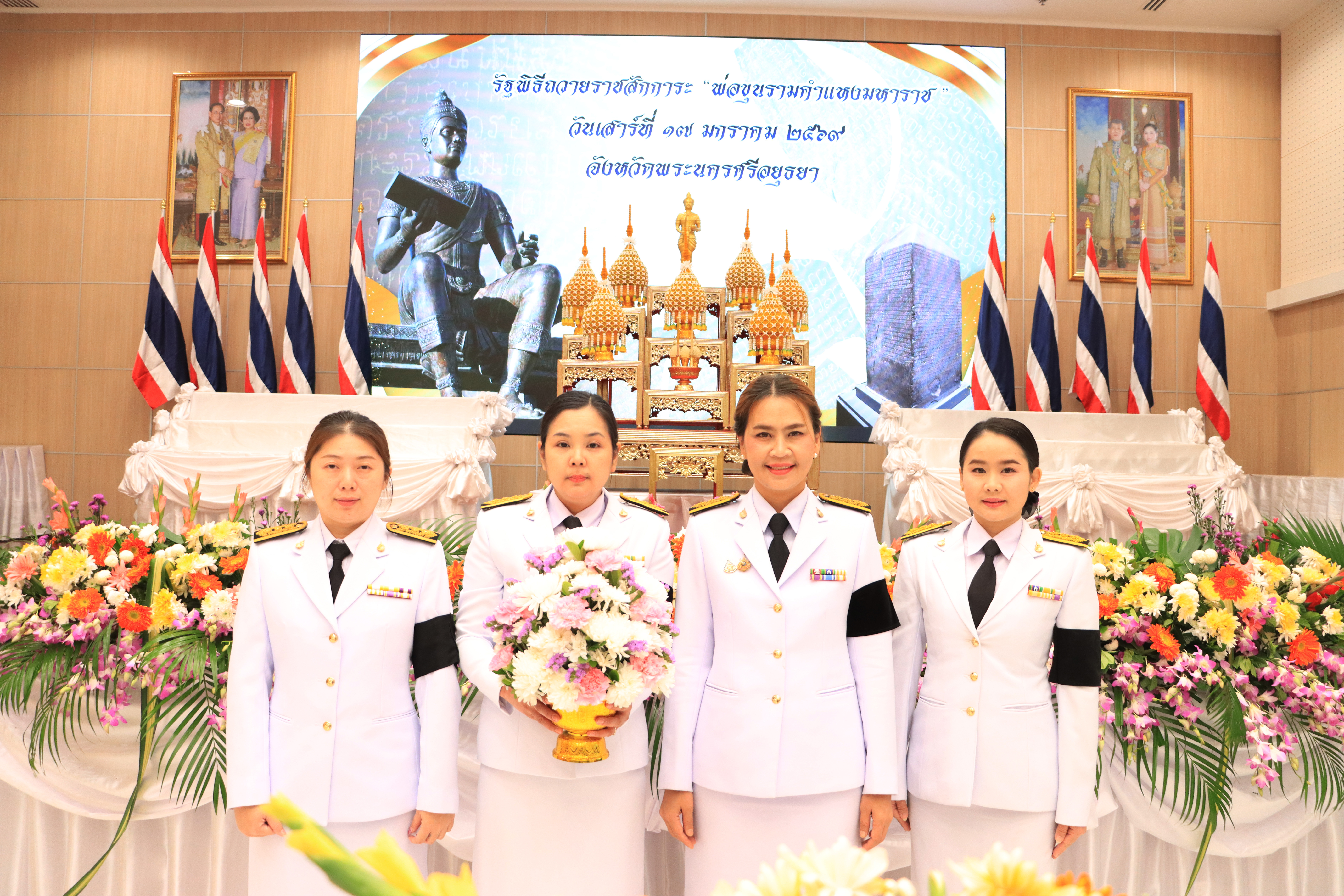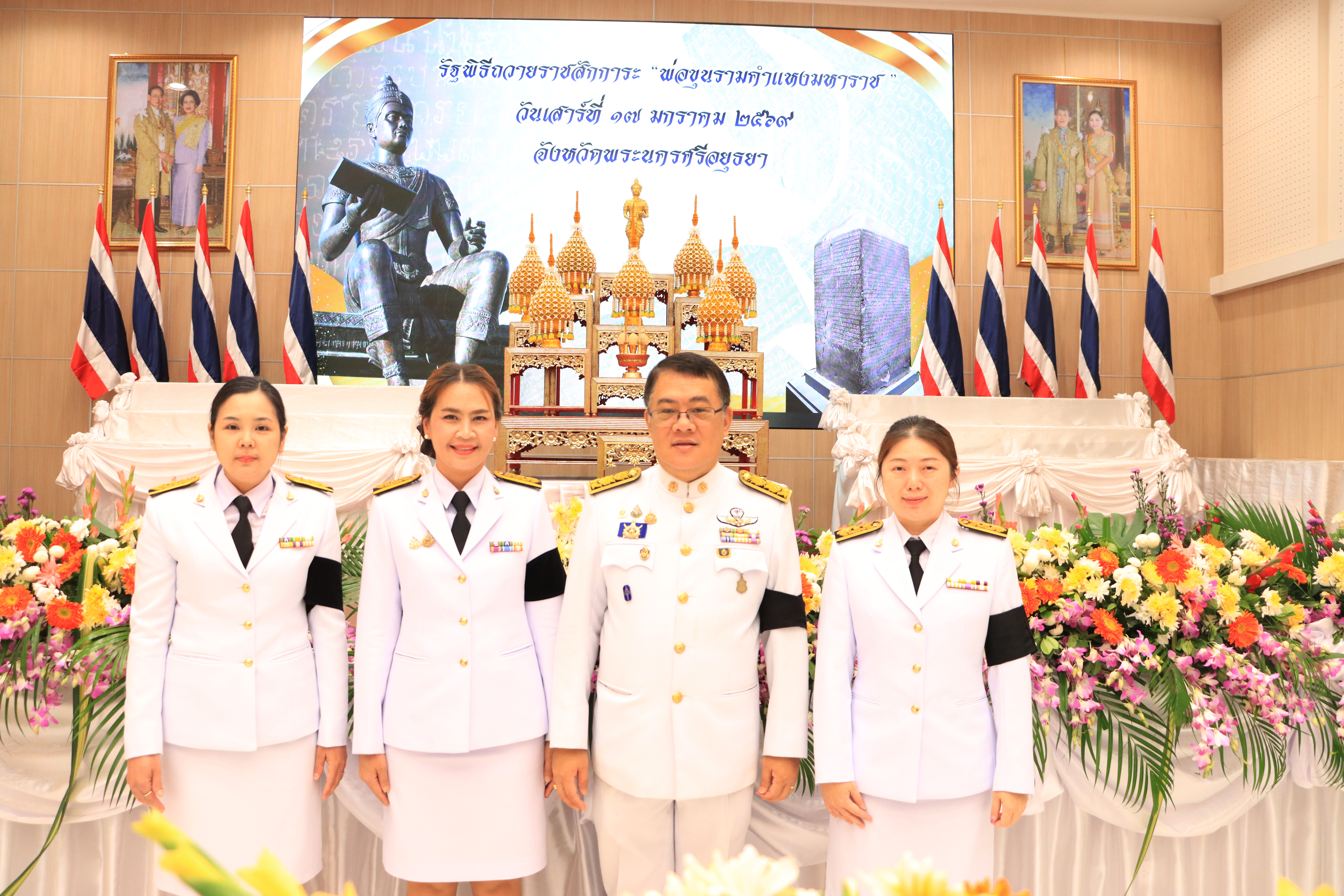 เมื่อวันเสาร์ที่ 17 มกราคม 2569 รองศาสตราจารย์ ดร.ประมุข อุณหเลขกะ อธิการบดีมหาวิทยาลัยเทคโนโลยีราชมงคลสุวรรณภูมิ มอบหมายให้ นางสาวชญาธร ปลื้มปั่น หัวหน้างานบริหารและพัฒนาระบบ สำนักงานอธิการบดี พร้อมบุคลากรร่วมรัฐพิธีถวายราชสักการะ “พ่อขุนรามคำแหงมหาราช” ประจำปี พ.ศ. 2569 โดยได้ร่วมวางพุ่มดอกไม้สดถวายสักการะเบื้องหน้าพระบรมรูปพ่อขุนรามคำแหงมหาราช โดยมีนายประพันธ์ ตรีบุบผา รองผู้ว่าราชการจังหวัดพระนครศรีอยุธยาเป็นประธานในพิธี เพื่อน้อมรำลึกในพระมหากรุณาธิคุณอย่างหาที่สุดมิได้ ทั้งนี้ รองศาสตราจารย์ ดร.ทรงวิทย์ เจริญกิจธนลาภ อาจารย์ประจำคณะบริหารธุรกิจและเทคโนโลยีสารสนเทศ ได้รับเกียรติเป็นพิธีกรในครั้งนี้ ณ ห้องประชุมใหญ่ อาคาร 3 ชั้น 2 ศาลากลางจังหวัดพระนครศรีอยุธยา
