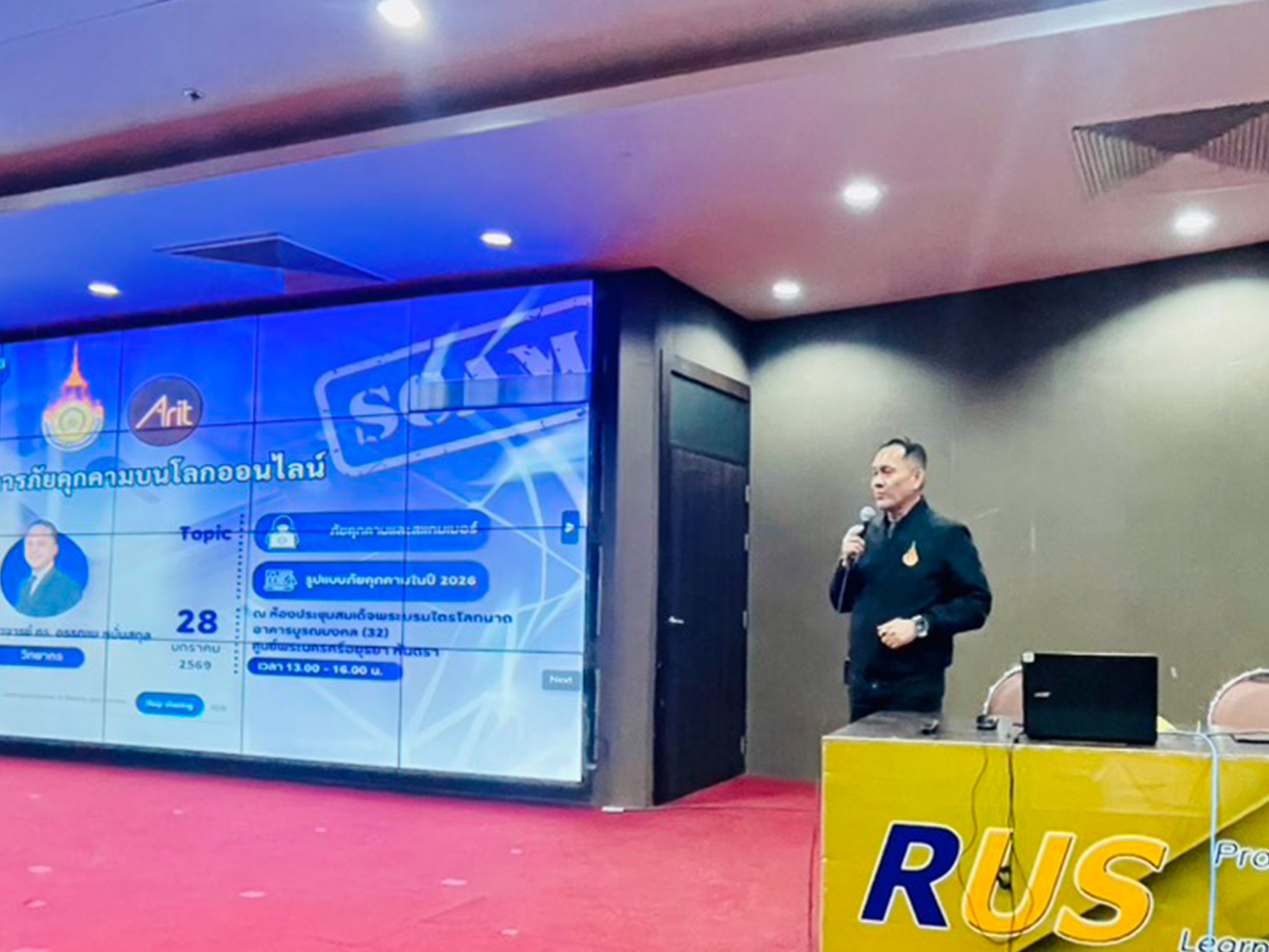 เมื่อวันพุธที่ 28 มกราคม 2569 รองศาสตราจารย์ ดร.กฤตย์ตนัย ธารารัตนสุวรรณ ผู้อำนวยการสำนักวิทยบริการและเทคโนโลยีสารสนเทศ มหาวิทยาลัยเทคโนโลยีราชมงคลสุวรรณภูมิ เป็นประธานเปิดโครงการภัยคุกคามบนโลกออนไลน์ โดยมีผู้ช่วยศาสตราจารย์สัญญา คำจริง รองอธิการบดีร่วมให้การต้อนรับพลตำรวจตรีทรงกลด เกริกกฤตยา ผู้บังคับการกองบังคับการตรวจสอบและวิเคราะห์อาชญากรรมทางเทคโนโลยี สังกัด กองบัญชาการตำรวจสืบสวนสอบสวนอาชญากรรมทางเทคโนโลยี พร้อมทีมงาน ในโอกาสเป็นวิทยากรให้ความรู้ เรื่อง “ภัยคุกคามและสแกมเมอ” และรองศาสตราจารย์ ดร.อรรณพ หมั่นสกุล หัวหน้าสาขาวิชาการรักษาความมั่นคงปลอดภัยไซเบอร์ เป็นวิทยากรให้ความรู้ เรื่อง “รูปแบบภัยคุกคามในปี 2026” เพื่อให้นักศึกษา บุคลากร และผู้สนใจเข้าร่วมอบรมได้รับการอบรมเรียนรู้ถึงภัยคุกคามบนโลกออนไลน์ สร้างความตระหนักรู้เพื่อกระตุ้นให้นักศึกษา บุคลากร และผู้สนใจ ตระหนักถึงความสำคัญของการป้องกันภัยในรูปแบบต่าง ๆ บนโลกออนไลน์ และตอบสนองต่อภัยคุกคามได้อย่างมีประสิทธิภาพและการสร้างวัฒนธรรมความปลอดภัยในการใช้งานเทคโนโลยีสารสนเทศ ซึ่งจะช่วยให้สังคมมีความปลอดภัยมากยิ่งขึ้น และสร้างความเชื่อมั่นในการใช้งานระบบดิจิทัลอย่างยั่งยืนในอนาคต ณ ห้องประชุมสมเด็จพระบรมไตรโลกนาถ ชั้น 3 อาคารบูรณมงคล มหาวิทยาลัยเทคโนโลยีราชมงคลสุวรรณภูมิ ศูนย์พระนครศรีอยุธยา หันตรา