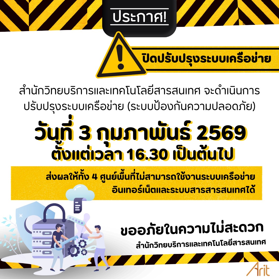ประกาศ ปิดปรับปรุงเครือข่าย วันที่ 3 ก.พ. 69
