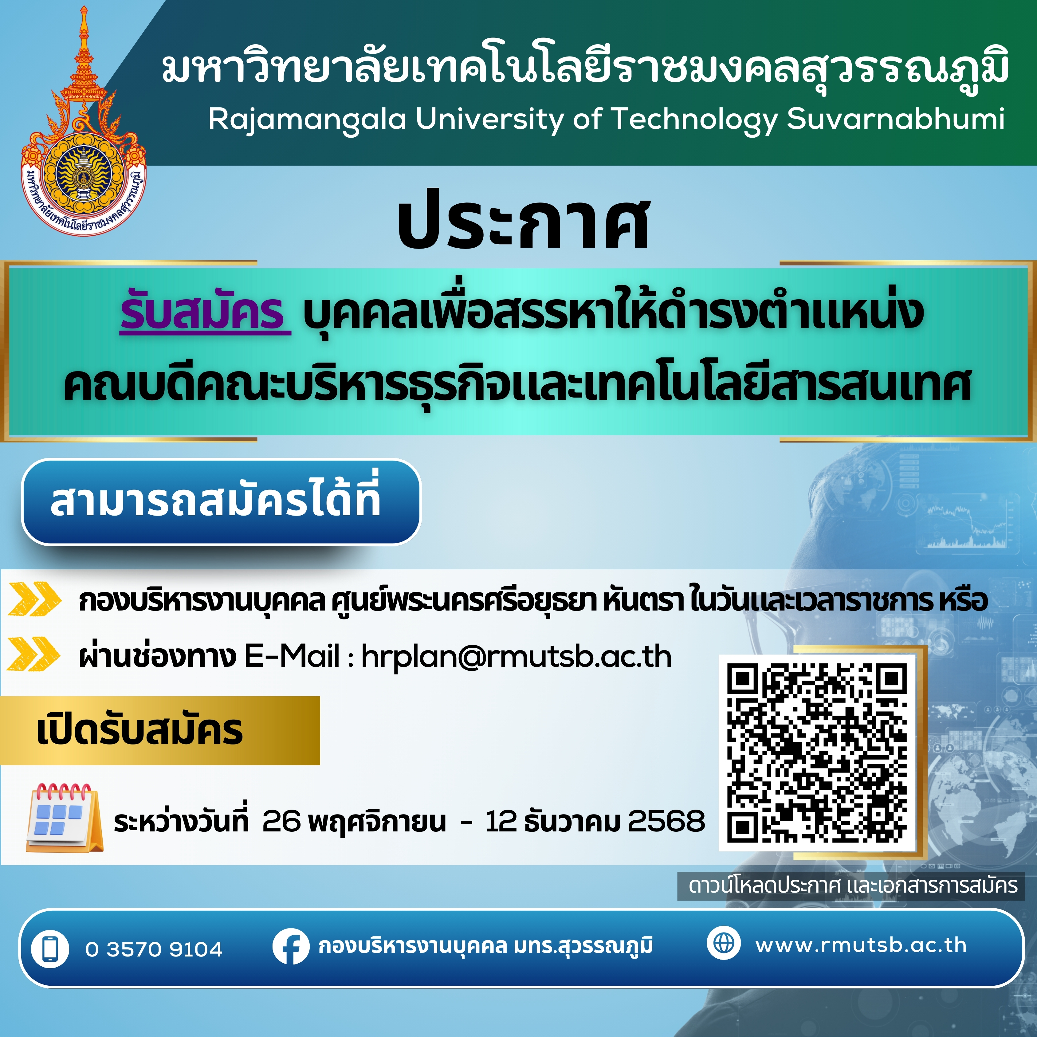 ประกาศคณะกรรมการสรรหาคณบดีคณะบริหารธุรกิจและเทคโนโลยีสารสนเทศ | ครั้ง เมื่อ 18 ชั่วโมงที่แล้ว
