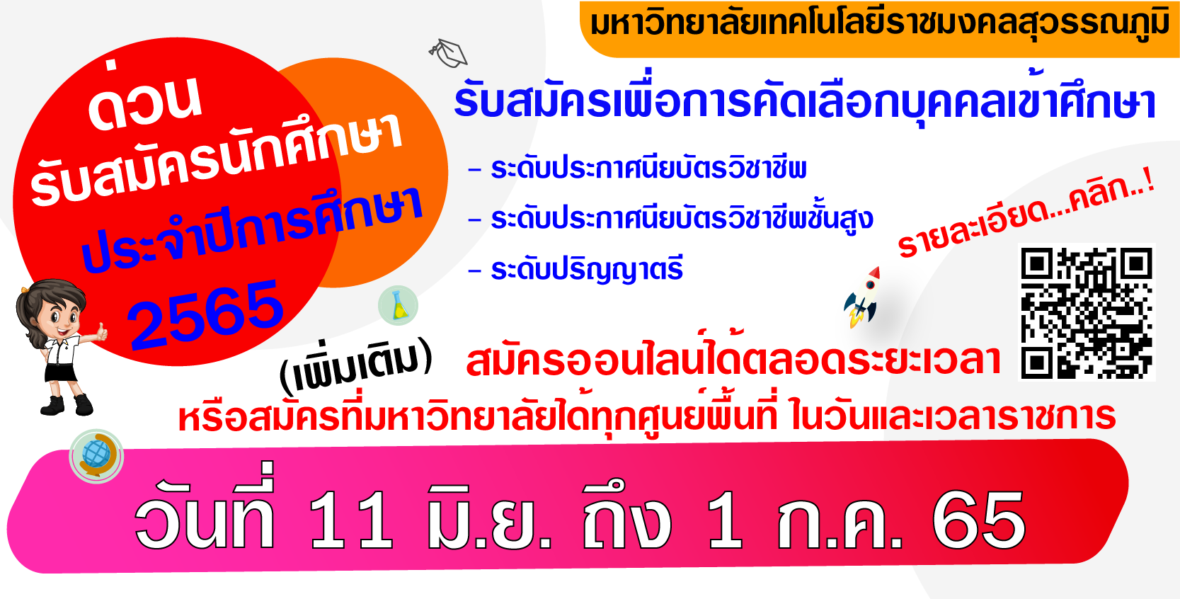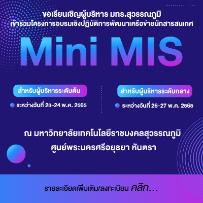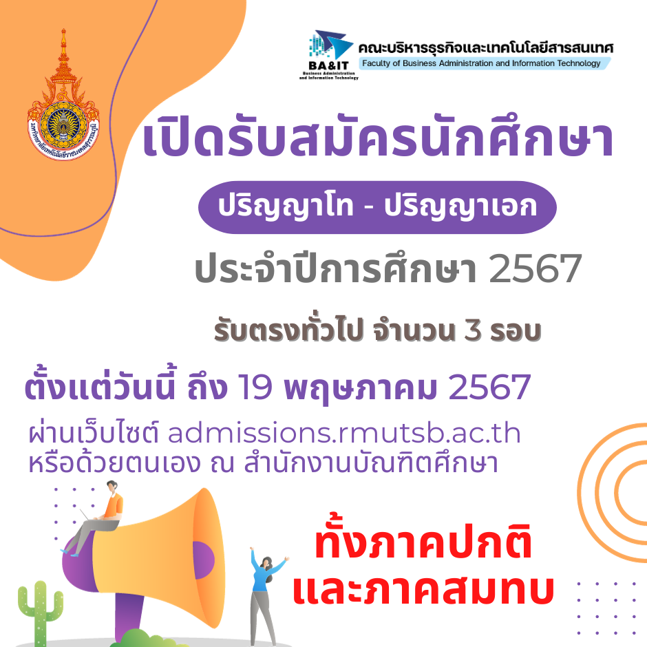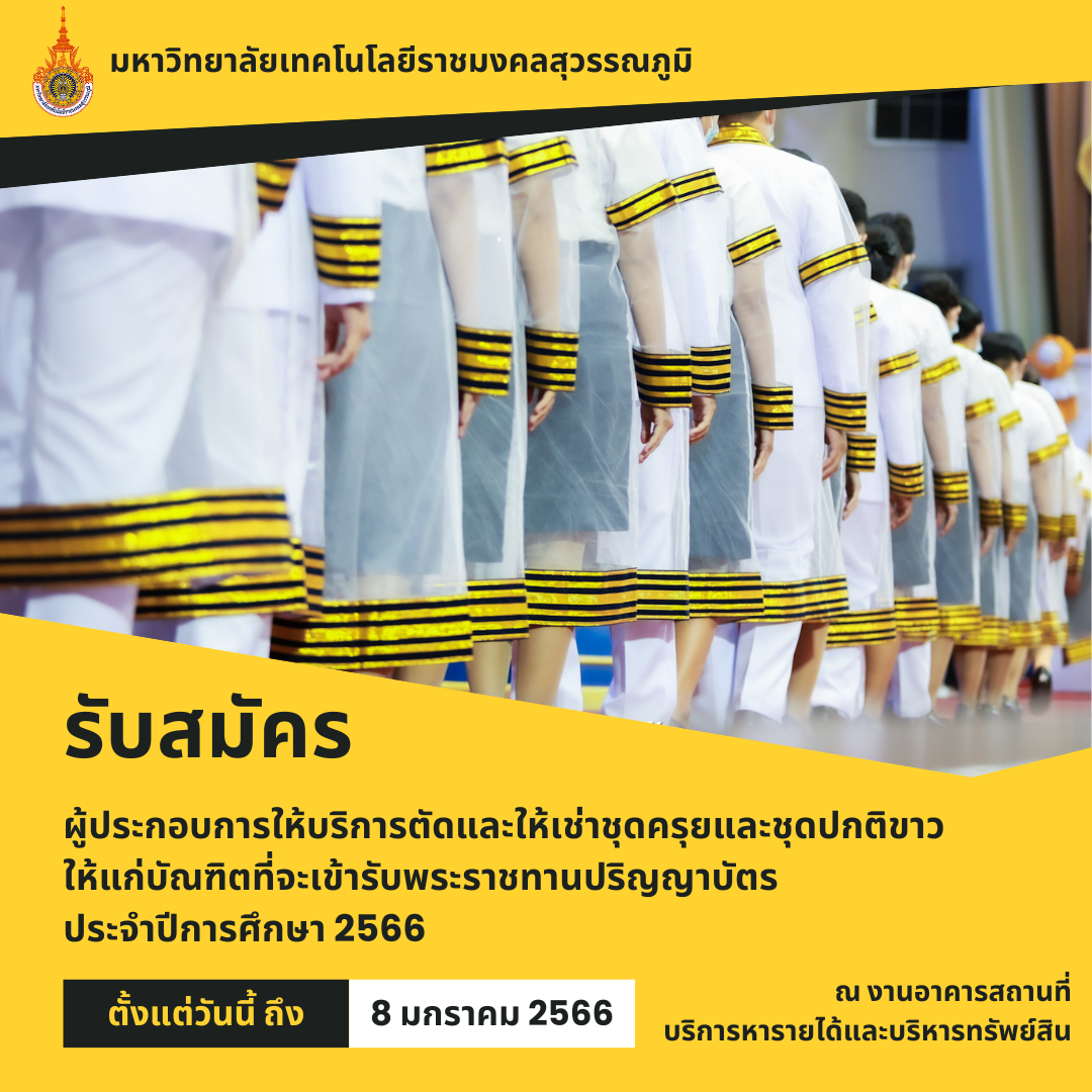ประกาศ มทร.สุวรรณภูมิ เรื่อง รับสมัครผู้บริหารจัดการพื้นที่สำหรับให้ร้านค้าจำหน่ายสินค้าในงานพิธีพระราชทานปริญญาบัตร ประจำปีการศึกษา 2567 | ครั้ง