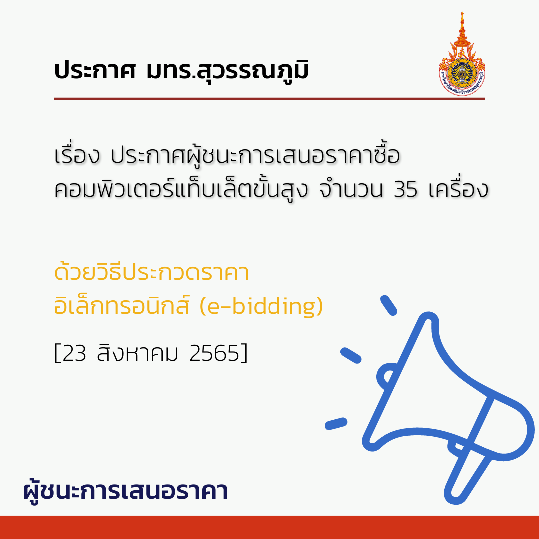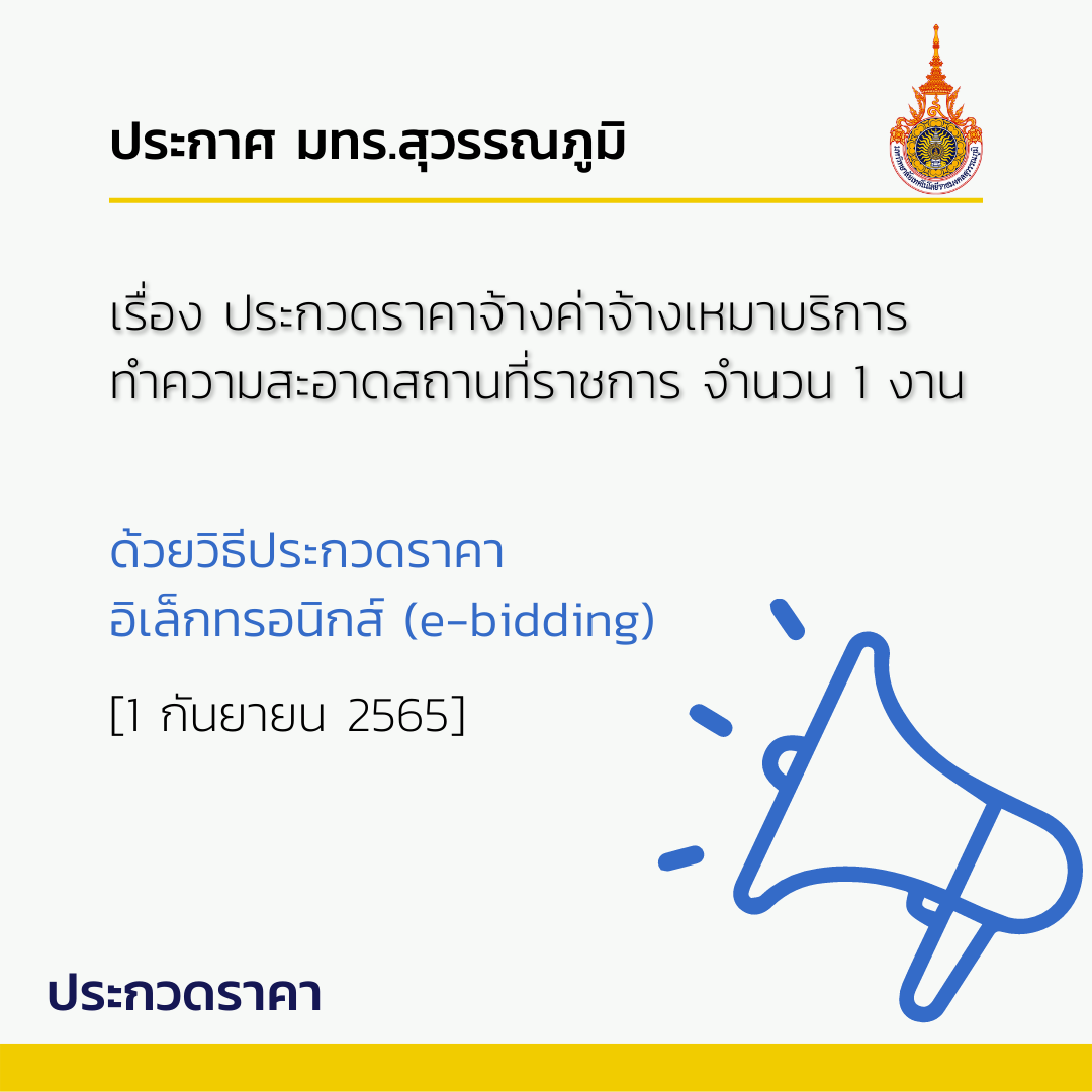 ประกาศ มทร.สุวรรณภูมิ เรื่องประกวดราคาจ้างเหมาบริการตรวจสุขภาพนักศึกษาใหม่ ประจำปีการศึกษา 2568 ด้วยวิธีประกวดราคาอิเล็กทรอนิกส์ (e-bidding) | ครั้ง