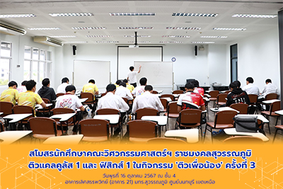สโมสรนักศึกษาคณะวิศวกรรมศาสตร์ฯ มทร.สุวรรณภูมิ จัด “F-Free-Zone ติวเพื่อน้อง ครั้งที่ 4” ติวเข้มแคลคูลัส-ฟิสิกส์ เสริมความพร้อมก่อนสอบ | ครั้ง