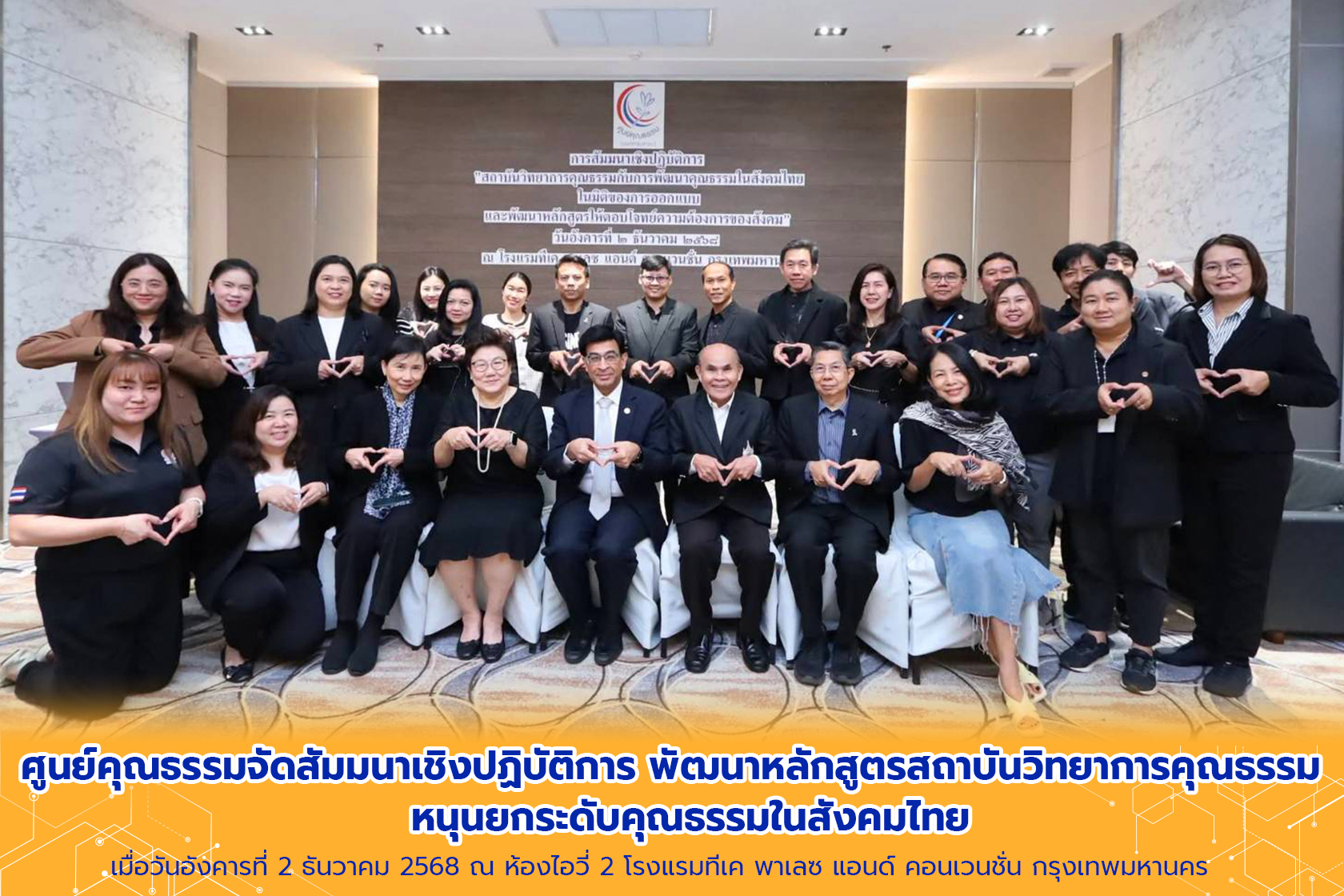 ศูนย์คุณธรรมจัดสัมมนาเชิงปฏิบัติการ พัฒนาหลักสูตรสถาบันวิทยาการคุณธรรม หนุนยกระดับคุณธรรมในสังคมไทย
