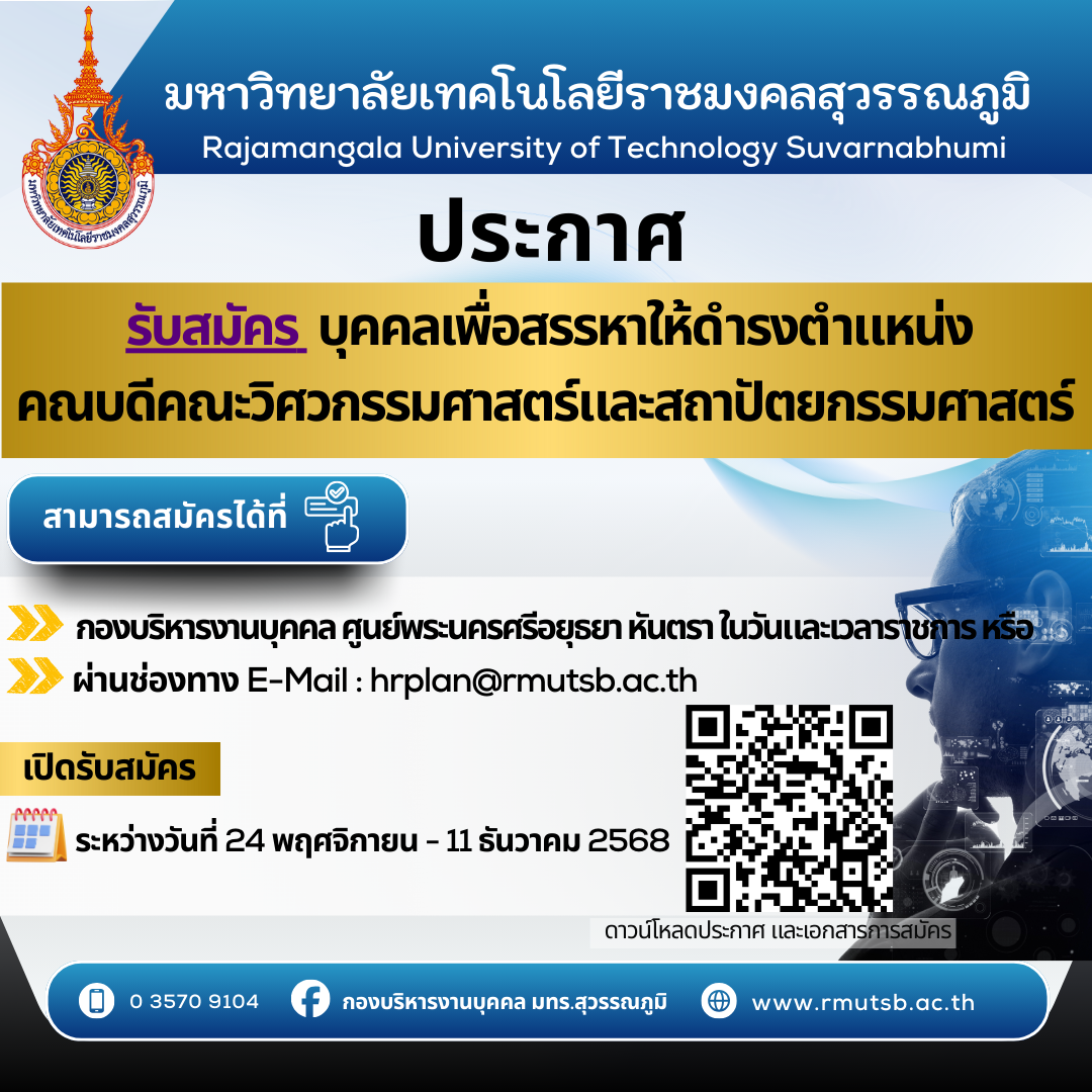 คณะวิศวกรรมศาสตร์และสถาปัตยกรรมศาสตร์ มทร.สุวรรณภูมิ แนะแนวการศึกษาเพื่อประชาสัมพันธ์หลักสูตรการเรียนการสอนของคณะฯ | ครั้ง เมื่อ 1 ปีที่แล้ว