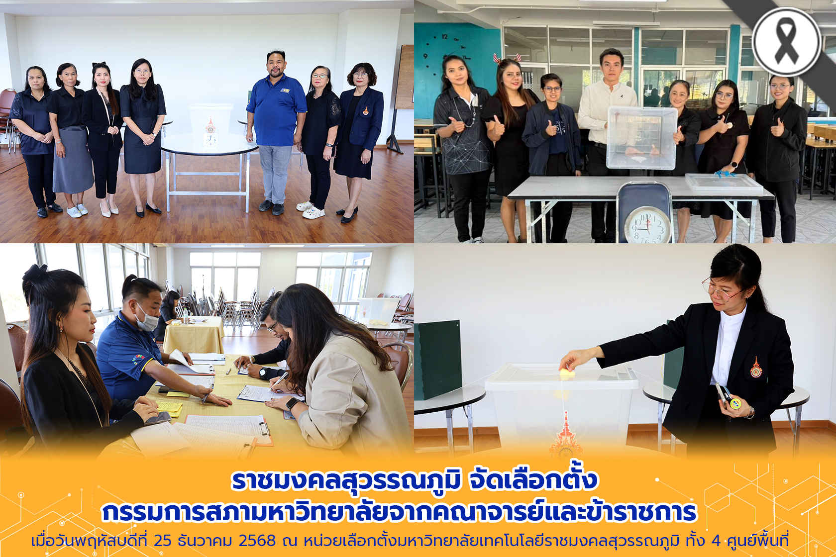 | ราชมงคลสุวรรณภูมิ จัดเลือกตั้งกรรมการสภาคณาจารย์และข้าราชการ | ครั้ง | เมื่อ 3 เดือนที่แล้ว |